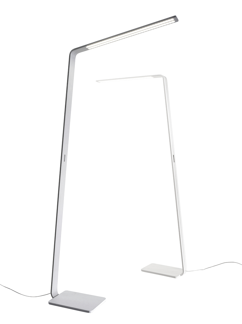 Lama was designed in a light, minimalist form for the Ma&De brand, which has marketed the experimental Linea Light collection in the lighting sector for 25 years. Lama literally produces a trail of light thanks to the extruded, machined and curved aluminium bar which makes it possible to insert the LED strips and the exclusive touch dimmer so they fit flush. Lama comes as a standard, pendant, wall, table or ceiling lamp in white and grey. The use of hi-flux LED strip technology provides warm lighting of 3000 kelvins (Technology I-Lèd).
