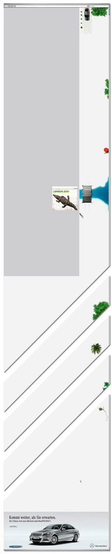 This banner utilises the natural scrolling behaviour of website visitors to visualise the advantages of Mercedes’ innovative, fuel-efficient automobile technology. The trajectory covered when scrolling symbolises the distance that this new technology can take vehicle drivers without having to refuel. While users are scrolling down, the new C-Class accompanies them to the bottom of the page. Yet when the end is reached, the journey is far from over – because thanks to this novel technology, the new C-Class goes much further than expected.