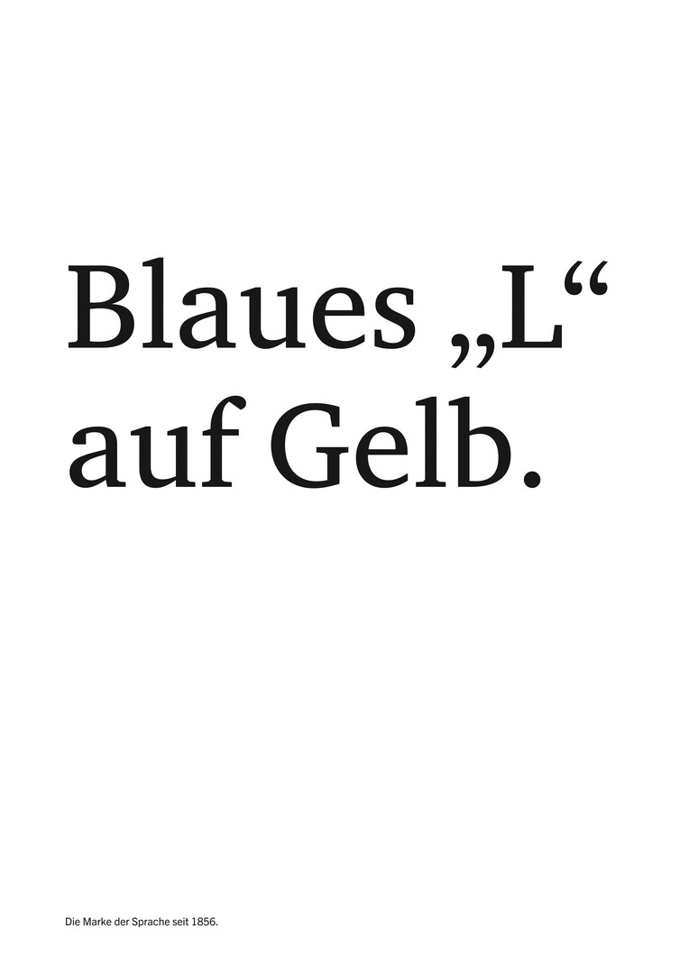 The design of this poster campaign successfully combines simplicity and cleverness. Not only is the idea to describe such a strong brand in words absolutely brilliant, but also is the idea of turning the familiar blue and yellow into black and white. The implementation, using classic, understated typography, is perfectly realised to draw attention through simplicity.