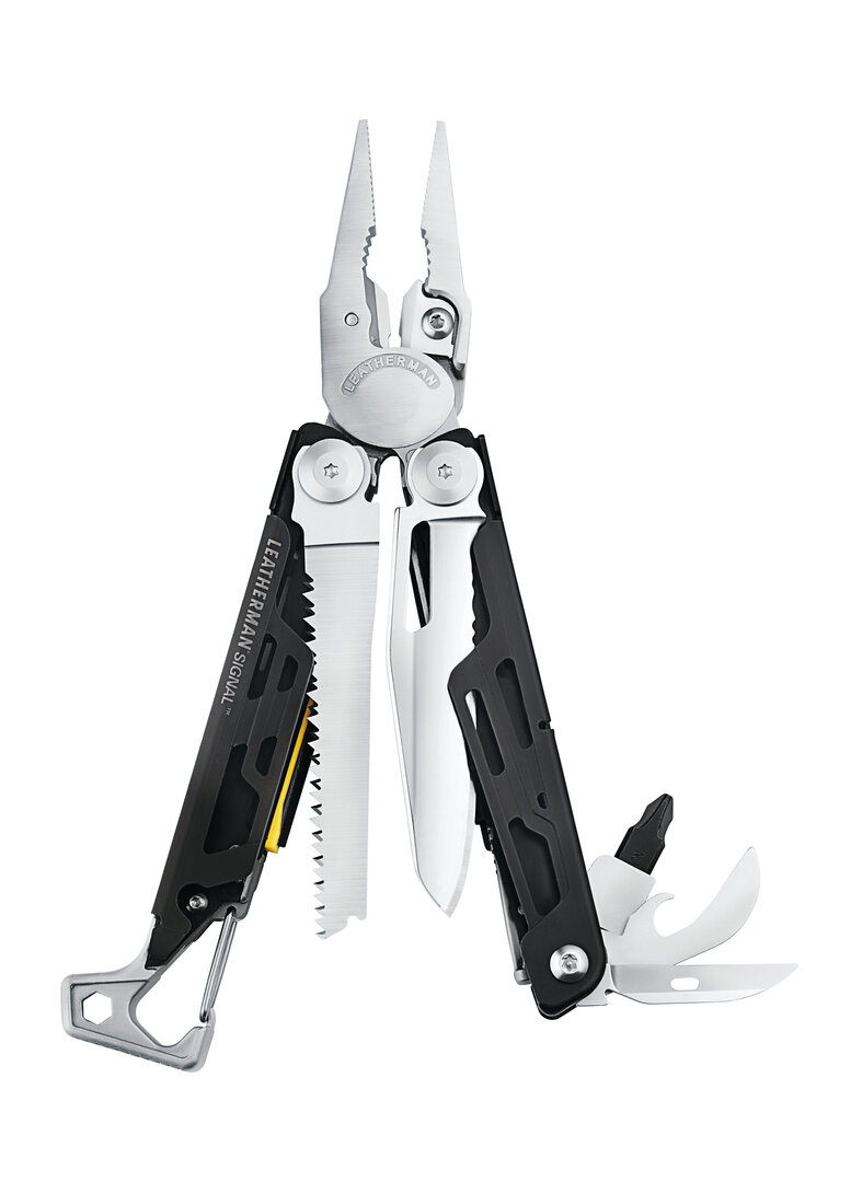 The Leatherman Signal combines classic tools like a saw, pliers, can opener and screwdriver with special tools like a whistle, blade grinder and fire starter, enabling users to help themselves in emergency situations even without modern technology. Furthermore, it is equipped with a hammer, wire cutters and file. With the help of the pocket clip or the snap hook, it can be attached to a trouser pocket or a backpack for quick access.