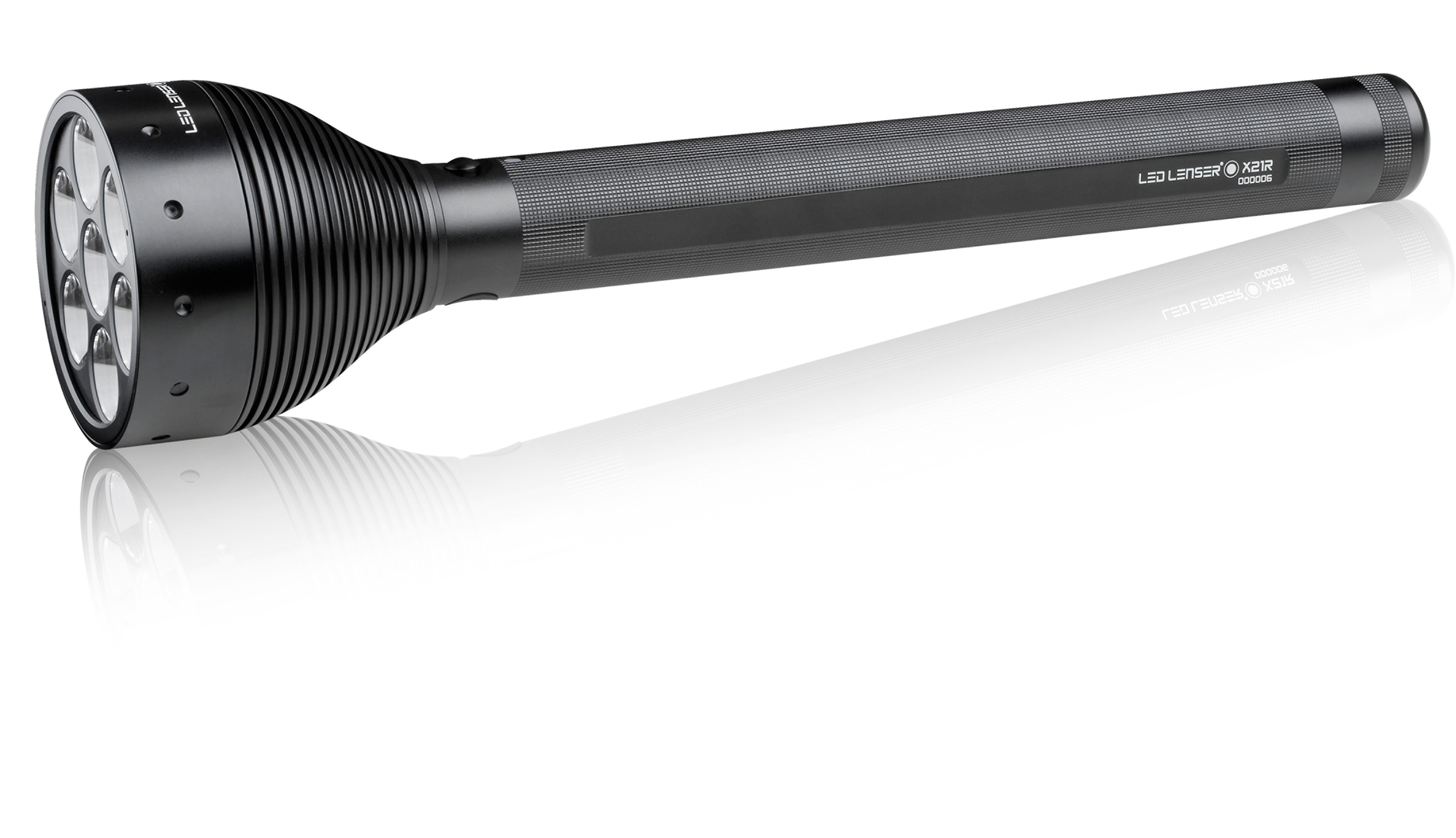The rechargeable X21R flashlight produces up to 1,500 lumens of light output. It features a total of eight lighting functions and three lighting programmes. Seven ultra-bright LED chips can be focused via seven individual lenses, which, thanks to the Xtreme Lense Technology, project an amazingly even and sharply defined circle of light. Especially when the focus is adjusted, the torch creates a blazingly bright beam of light.