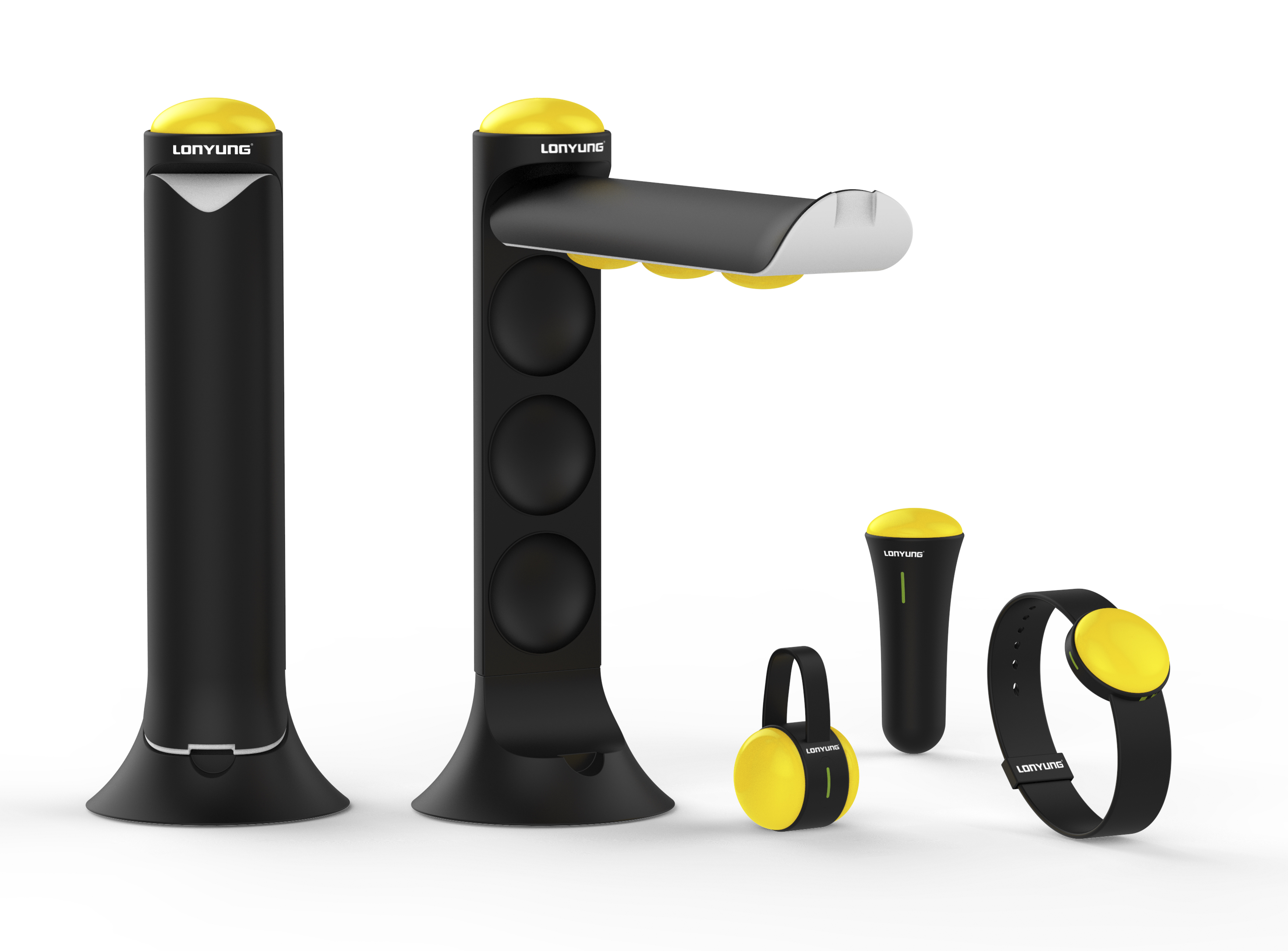LED POD LIGHT is a desk lamp that uses detachable LED light pods instead of light bulbs. When the arm of the lamp is closed, the desk lamp is transformed into a night lamp with gentle lighting. When the arm is extended, 3 LED light pods work together as a complete light source. A one-touch switch on the lamp offers two convenient lighting modes: main lighting mode and night lighting mode. The intensity and angle of the light can also be adjusted, making it the perfect reading lamp. The light pods are easily removable and work as portable flashlights, wrist lights or functional hanging lights. As a wrist light, it comes with optional accessories and a one-touch button. As a flashlight or suspended light source, it can be used in different kinds of indoor emergency situations or outdoor activities. Lastly, a one-touch button on the pod allows the luminosity of each pod to be adjusted. The detachable light pods are waterproof and run on rechargeable batteries. Each pod comes equipped with a detachable USB port to recharge the battery. An indicator light turns red when the battery is being charged and turns green when the battery is fully charged.