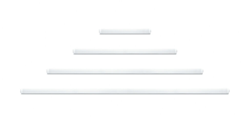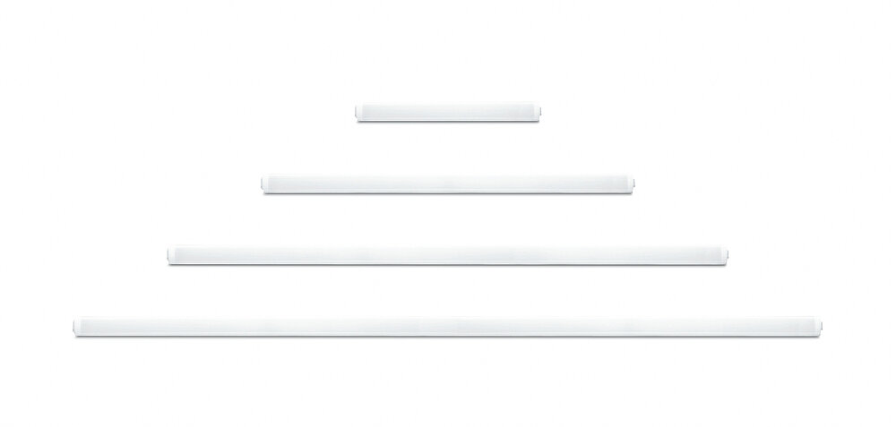 A profile height of only 14 mm as well as an inbuilt driver are the technical features that characterise this LED tube series. With a light efficiency of up to 150 lumens per watt, the driver’s dimming function provides high comfort. The individual modular versions are flexibly combinable, while up to eight tubes can be connected in one row. The luminaires are easy to install with clips. The tubes can be either integrated into lamps or used independently.