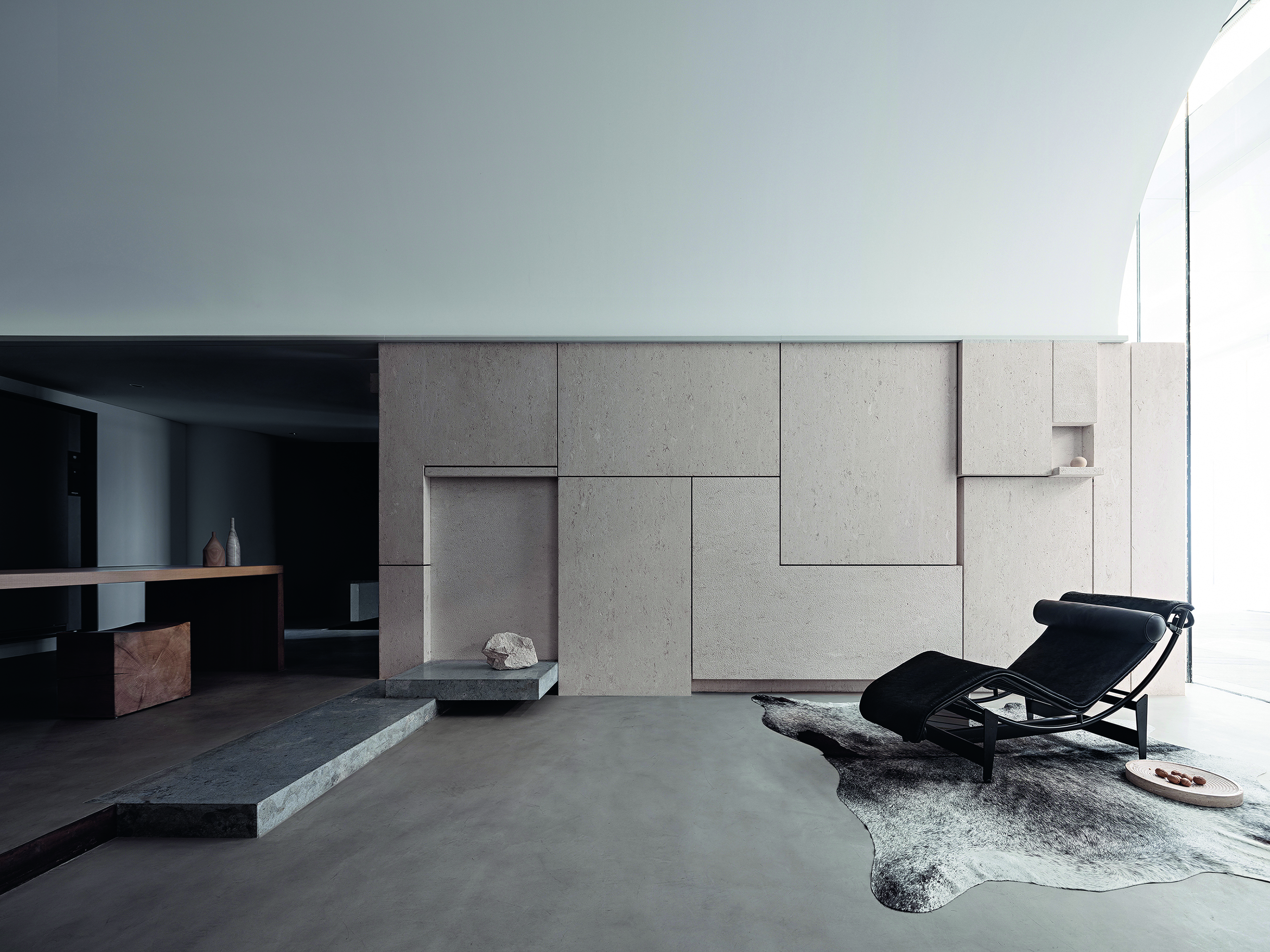 With its emotionally appealing spatial staging, the sophisticated design of this showroom captivates visitors.