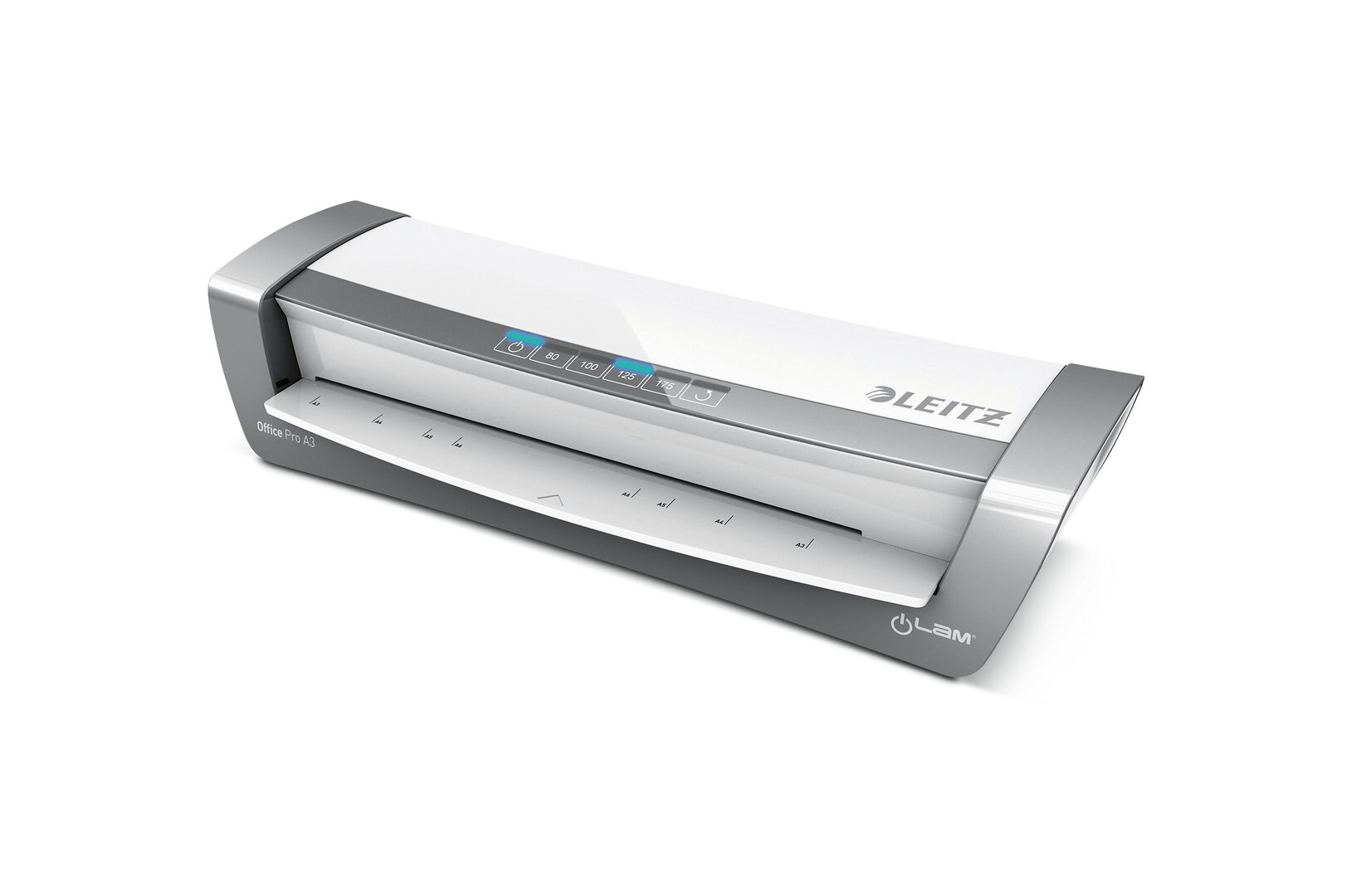 The coherent design of the Leitz iLAM Office Pro laminator attracts attention because of its performance capabilities and high-quality appearance.