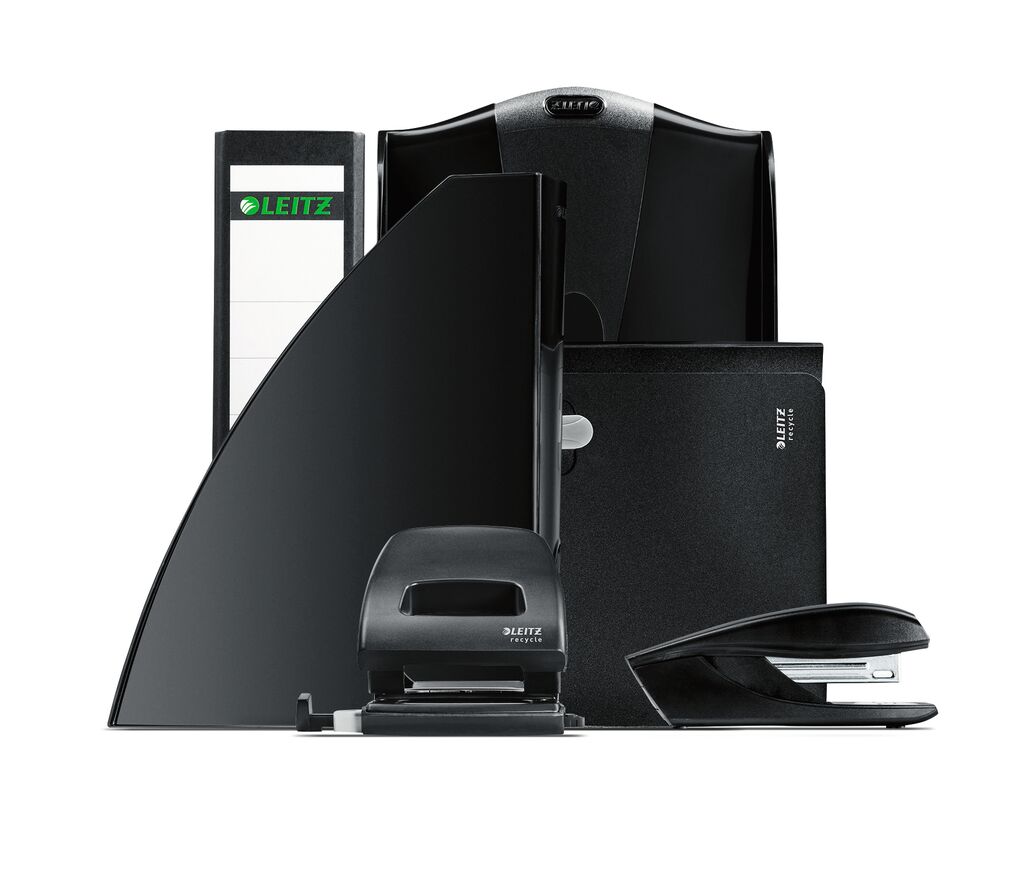 This set of office products is climate neutral, fully recyclable and made from up to 100 per cent recycled materials. Leitz Recycle is just as suitable for use in the office as for working from home. The range includes classic office products such as lever arch files, staplers and hole punches. Desktop accessories such as a letter tray and a magazine file, as well as document wallets and display books complete the collection. The individual components have a plain, black finish with grey highlights suited to all types of interiors.