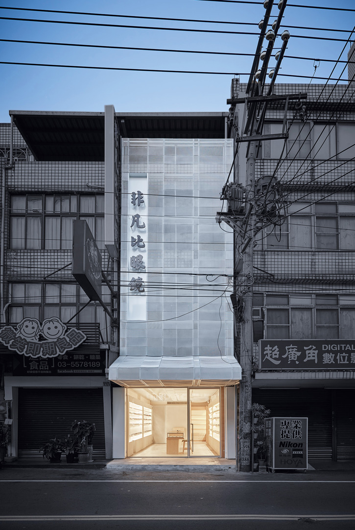 As a design concept, “lens and space” is based on the idea of transferring the characteristics of different lenses into design elements to create exclusive spatial properties for glasses products. The retail area makes use of expanded mesh with different sizes of holes. A captivating spatial tension is achieved by a process of recombining, layering and then applying this material from the architectural wall to the interior ceiling. The application of concave lenses, with their angle variations, creates twisted and tilted image effects for presentation in the ceiling design and in the display cabinetry.