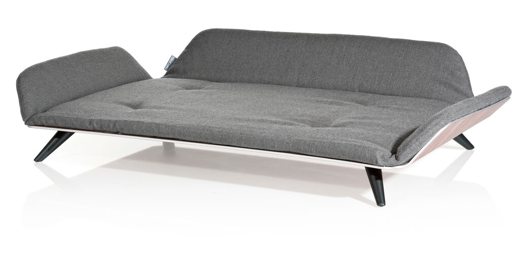 Letto dayBed is a dog bed with an eye-catching design displaying striking and timeless lines. The sturdy body of the bed is made from anodised aluminium with a real wood veneer. The all-round raised side panels give the dog a sense of security, while the fitted mattress is pleasantly soft, reversible and fully washable. The soft, yet robust fabric has a distinct structure and, together with the aluminium frame, is available in different colours. The wooden feet were designed in a style reminiscent of the 1950s.