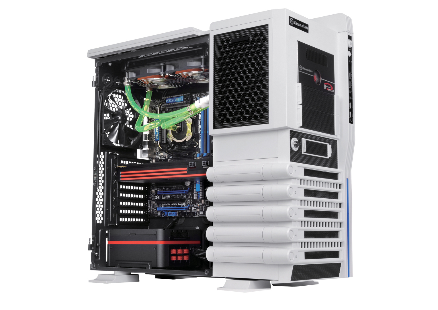 Asymmetrical contouring underlines the variety of options offered by this chassis in the assembly of a gaming PC. Technically, it stands out with its five sets of hot-swappable hard drive trays and a sophisticated cooling concept.