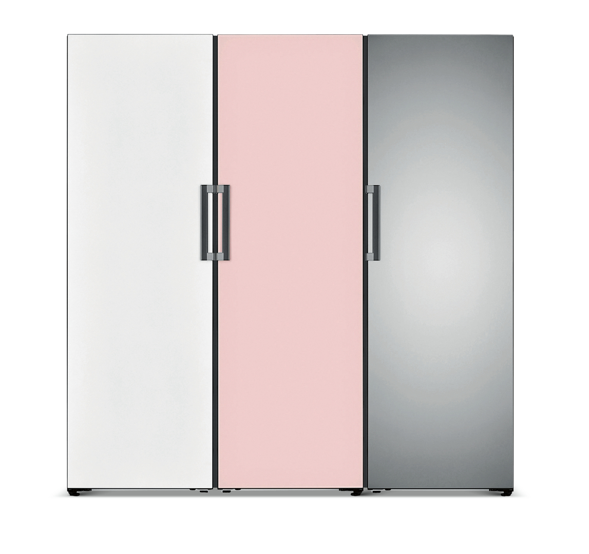 The refrigerator series is characterised by an even front design enhanced by a minimalist bar handle. All branding details are applied inside to ensure a clear appearance. Thanks to 13 different texture and colour options of the door panel, the refrigerator blends well into its environment or provides special colour accents. The exterior dimensions of the appliance are compatible with common furniture dimensions, achieving the effect of a built-in refrigerator.