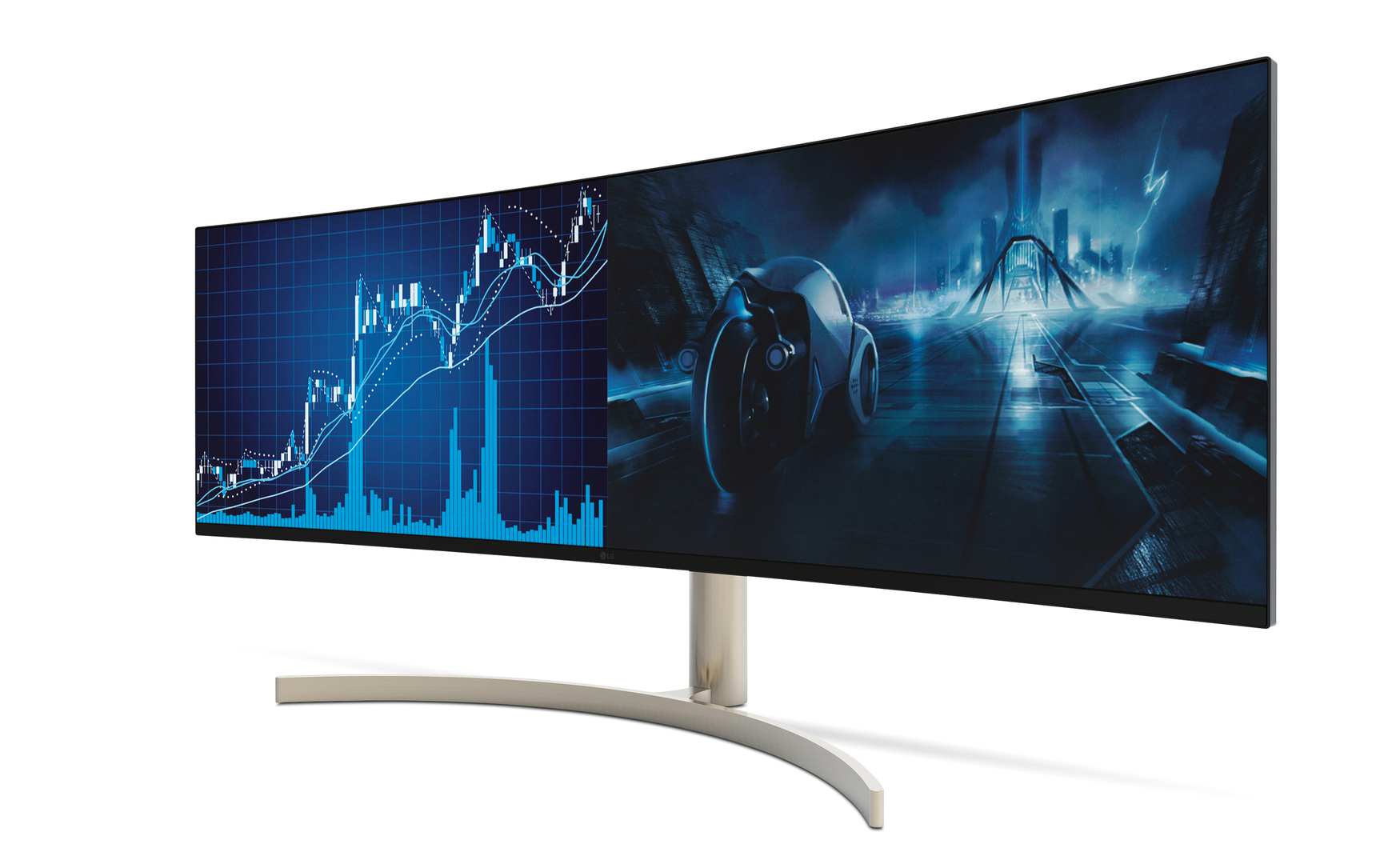 This large monitor presents itself in a precious and elegant way. Users can fully immerse themselves in the content and are also able to work quickly and efficiently.