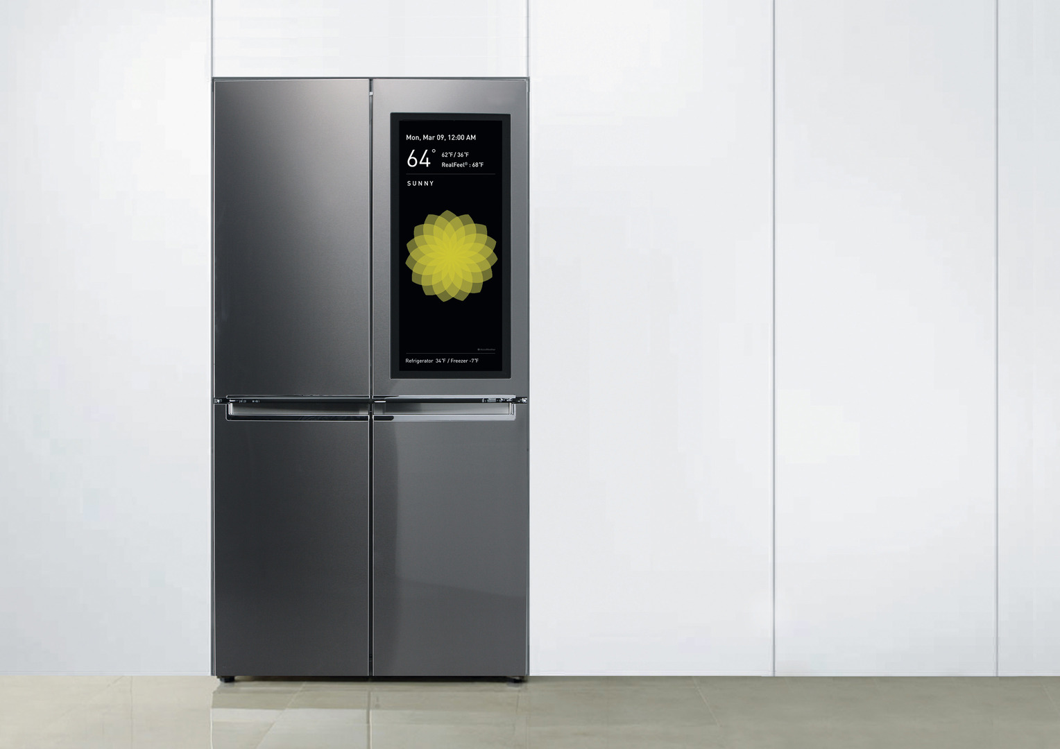 Smart InstaView is an interactive refrigerator that provides new values for the kitchen, based on several innovative functions. Apart from turning the transparent door on and off, users can check the status of food inside without opening the door, even when out and about thanks to a dedicated app. All necessary information is available at a glance and, by touching the screen on the refrigerator, they can enter expiration dates or leave messages. Moreover, various options enhance convenience, such as a “sticker” function for marking food, a timer function, recipes, TV programmes and music.