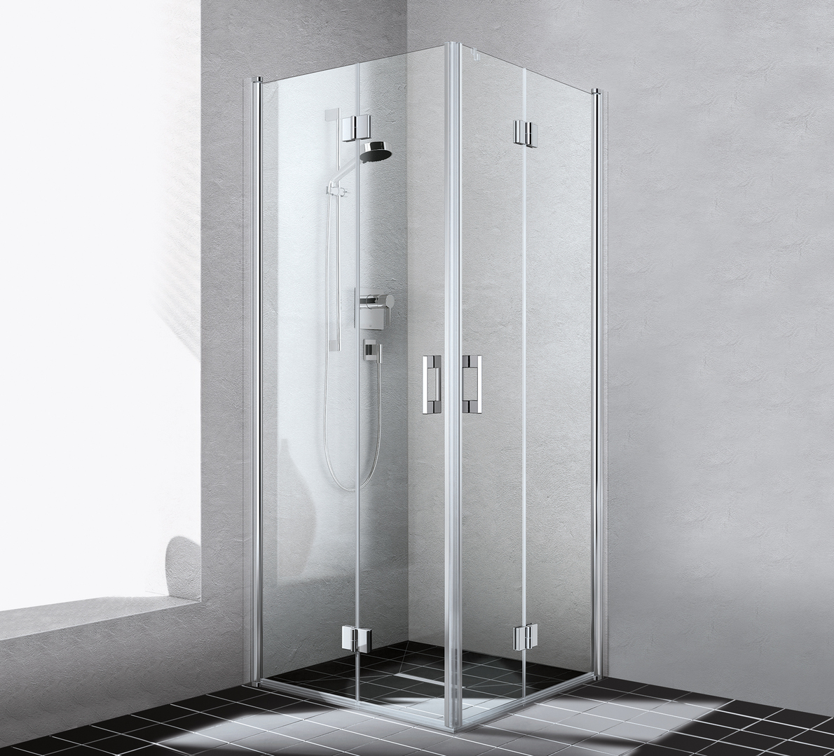 Liga offers an expedient, easy-to-clean shower solution where it is necessary to save space. Two doors made of 5-mm-thick single-pane safety glass keep the steam in the shower enclosure. They are folded inwardly by means of high-quality joints and elegantly placed against the wall to save space. The raising/lowering mechanism integrated in all hinges as well as ergonomically bow-shaped handles facilitate handling.