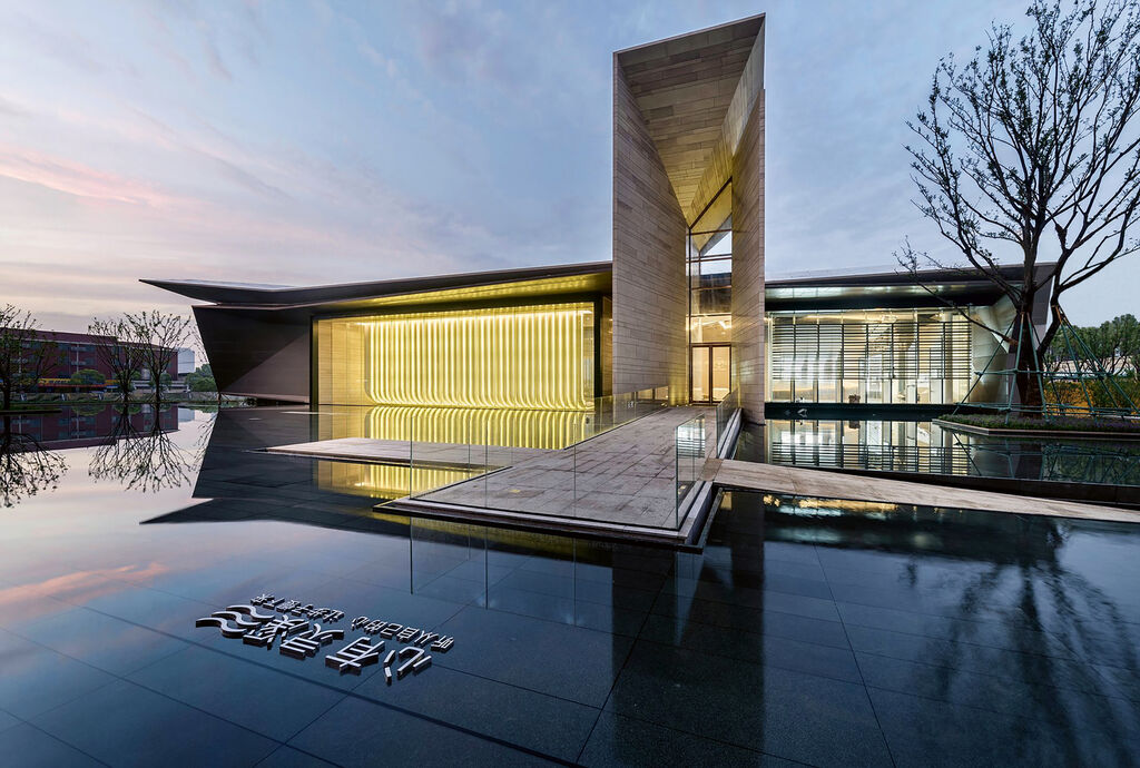 The alluring design of this estate agency retail space takes water as its theme and showcases it – just like an art exhibition would. The design brings interior, architecture and landscape together to create a whole. Water is always centre stage, albeit in different forms. Right next to the meeting space in the sales centre, there is, for instance, a pond enclosed by a glass wall. A lake has been created just outside the building which reflects a light installation on the facade that creates the impression of flowing water.