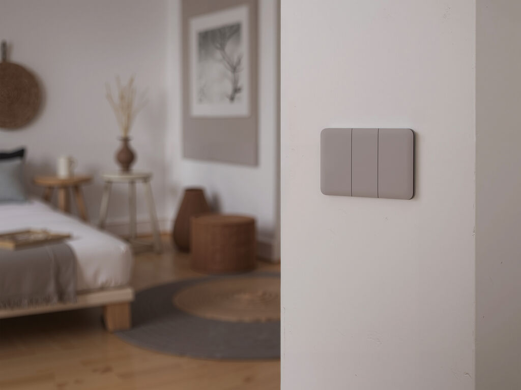 LightSwitch (1-gang) [120] Jeweller combines touchless light control with a minimalist design. A simple gesture with the hand, elbow or even the knee from a distance of up to 15 mm is all it takes – ideal when hands are dirty or full. The flat, touch-sensitive surface is available in eight colours, while the discreet LED backlighting ensures good visibility without glare. The switch can be automated, remotely controlled and integrated into security systems via an app.
