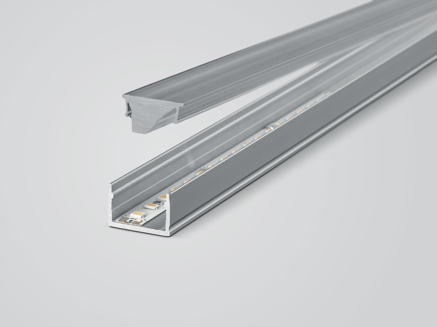 The linear lens was developed exclusively for furniture manufacturing and allows for a focused lighting. In corresponding dimensions, it can not only be mounted for instance to the bottom of hanging cabinets to achieve a uniform illumination of kitchen worktops, but is also suitable for installation in storage rooms and walk-in wardrobes. Due to the linear lens bundling the light of the LED band, the lighting intensity doubles in the desired focus area. In addition, glare is reduced by 85 per cent. It is suitable for LED bands with a width of 5 or 8 mm.