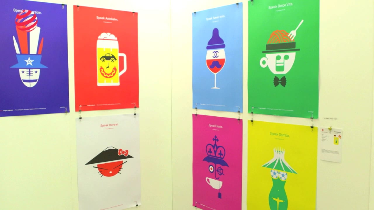 Accompanying “Lingua Digitalis”, the third book in the worldwide published Lingua series, this poster series was developed, alongside a website and an app, for book retailers and selected points of interest to promote the extensive compendium of globally understood, pictogram-based language. The posters feature typical country-specific clichés in the form of playfully assembled icons that come across as likeable pictogram faces, issuing onlookers with a tongue-in-cheek invitation to express themselves in cultures and languages that are basically foreign to them by using pictograms. The designs show typical country-specific products – a beer jug for Germany, a wine glass for France or an espresso cup for Italy – that are enhanced with poignantly illustrative details that make the respective country and the specific characteristics of the people living there become globally understandable without and beyond words.