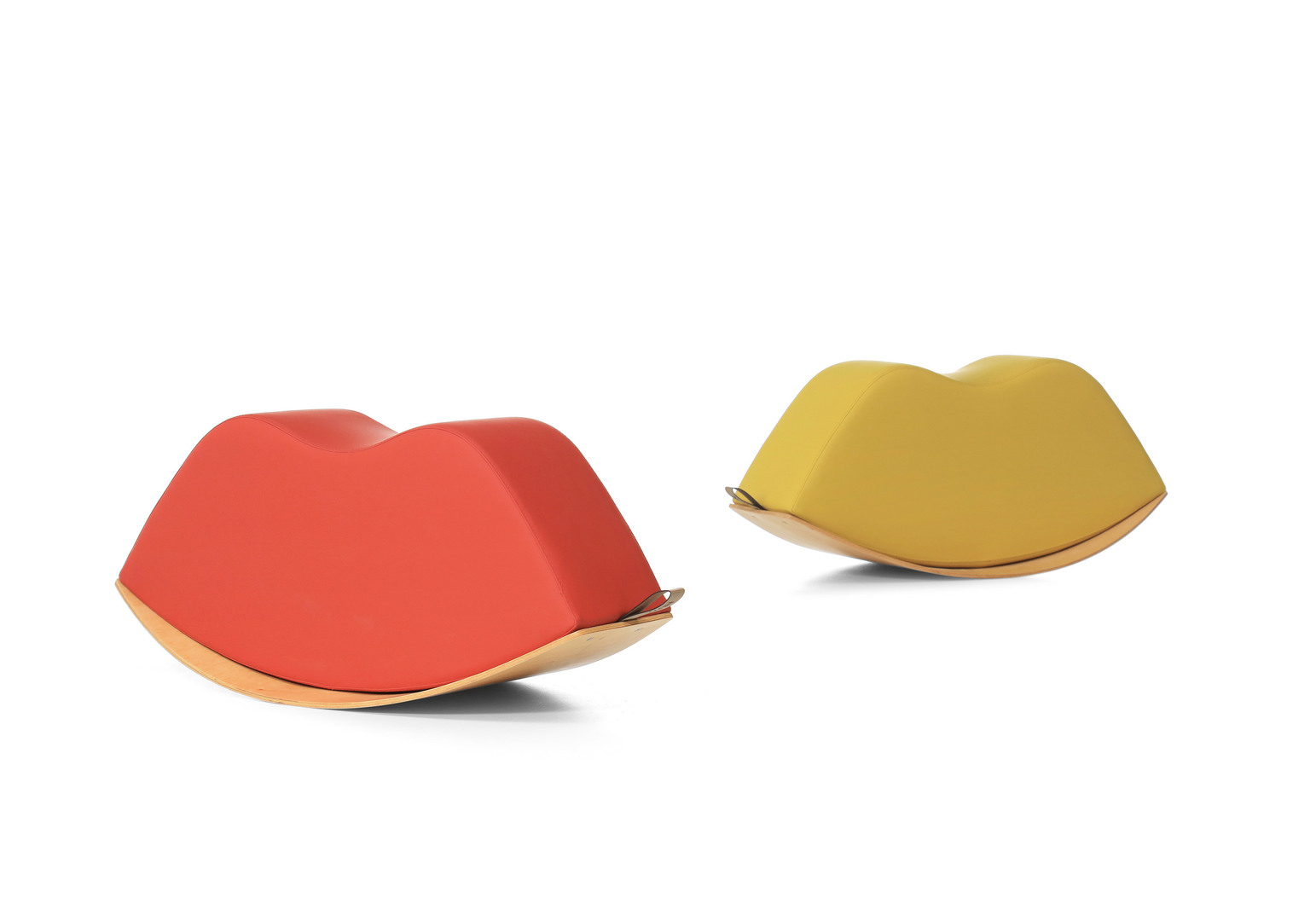 The name “Lips” already emphasises the underlying idea of the design: the dynamic form of the upholstered pouf is reminiscent of a mouth. Its rounded base allows gentle rocking movements that activate the muscles of the user and support active sitting. When not in motion, Lips provides high comfort by supporting a relaxed sitting position. Complementing accessories comprise a holder that provides space for tablets and other technical devices.