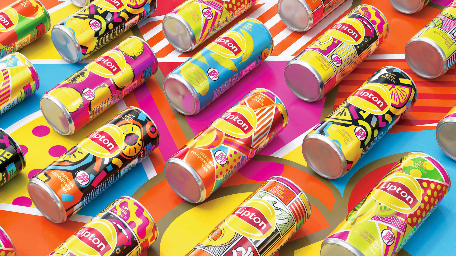 The Lipton Pop Art Edition is a collection of 250 ml miniature cans, available only in Russia, which are dedicated to the bold and modern aesthetics of pop art. Influenced by the distinctive styles of pop artists, bright and inspiring designs are combined with the personality of the Lipton brand to reinterpret the packaging. The resulting collectibles were then paired with each of Lipton’s flavours, such as black tea with peach and lemon or green tea. Aiming to bring a bit of the gallery experience to stores, the brand stands out on the shelf and reasserts itself in the crowded beverage market.