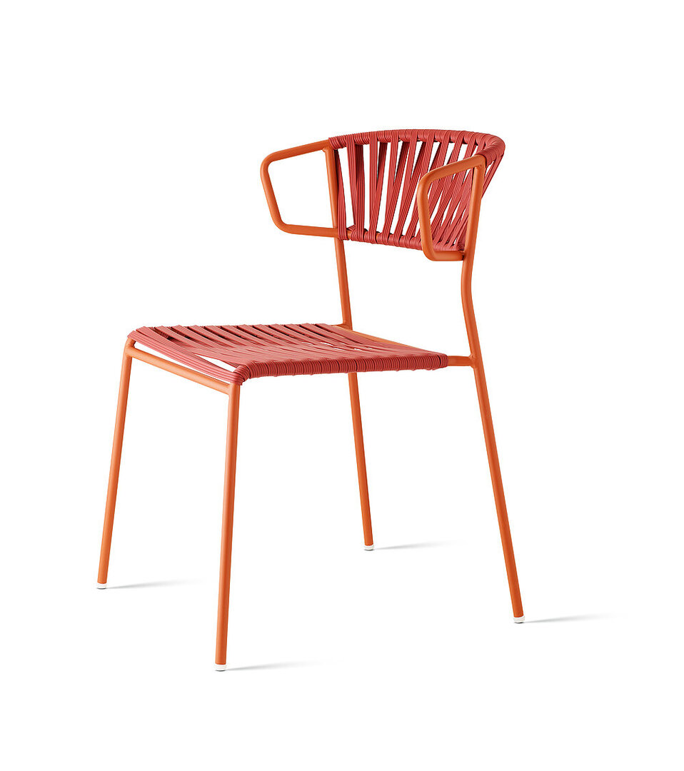 The design of the Lisa Filò chair captures the elegant ambience of villas on the French Riviera. The distinctive braiding of the seat and back is made using nautical rope and comes in four colours. There is also a version in woven, extruded PVC. Galvanised, powder-coated steel has been used for the chair’s frame. With sustainability in mind, all the materials employed can be recycled. The chair is suitable for outdoor use and is available as a stackable chair and in armchair and lounge versions.