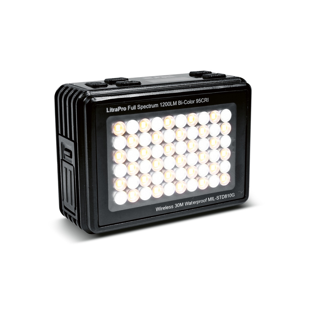 The LitraPro is a compact bicolour mini light for cameras. The brightness and colour temperature can be controlled via Bluetooth by a smartphone or directly from its display. Users have the option to choose between factory or user-defined presets. The light with its robust case also allows for underwater shots and impresses in particular with regard to light performance, luminosity and beam angle. The colour-rendering index of the LitraPro, which can be used with GoPro, single-lens reflex or mirrorless system cameras as well as with a tripod, also speaks for its quality.