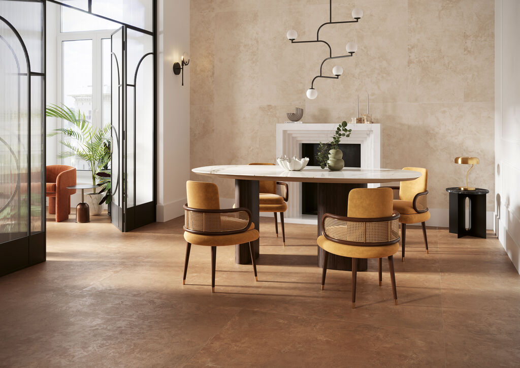 The classic trowelled look and dusty colours of the LIV Terria Tile Collection give living spaces a cosy aesthetic with a touch of luxury.