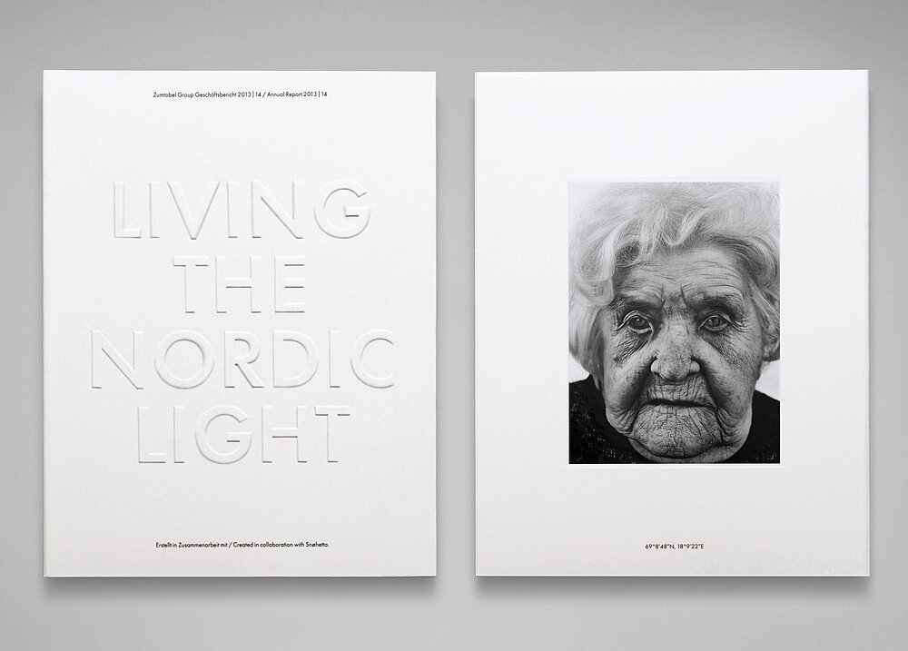 Since 1992, the Zumtobel Group – a leading supplier of integral lighting solutions – has commissioned renowned designers to lend artistic expression to their perception of light. By interviewing four people over 100 years old who have always resided above the Arctic Circle, the designers explored the effects of living in the absence of Nordic light. This unusual annual report set out to capture individual experiences related to the indisputable presence of light and darkness, before and after the introduction of electricity. A fascinating visual language catches the readers’ attention.