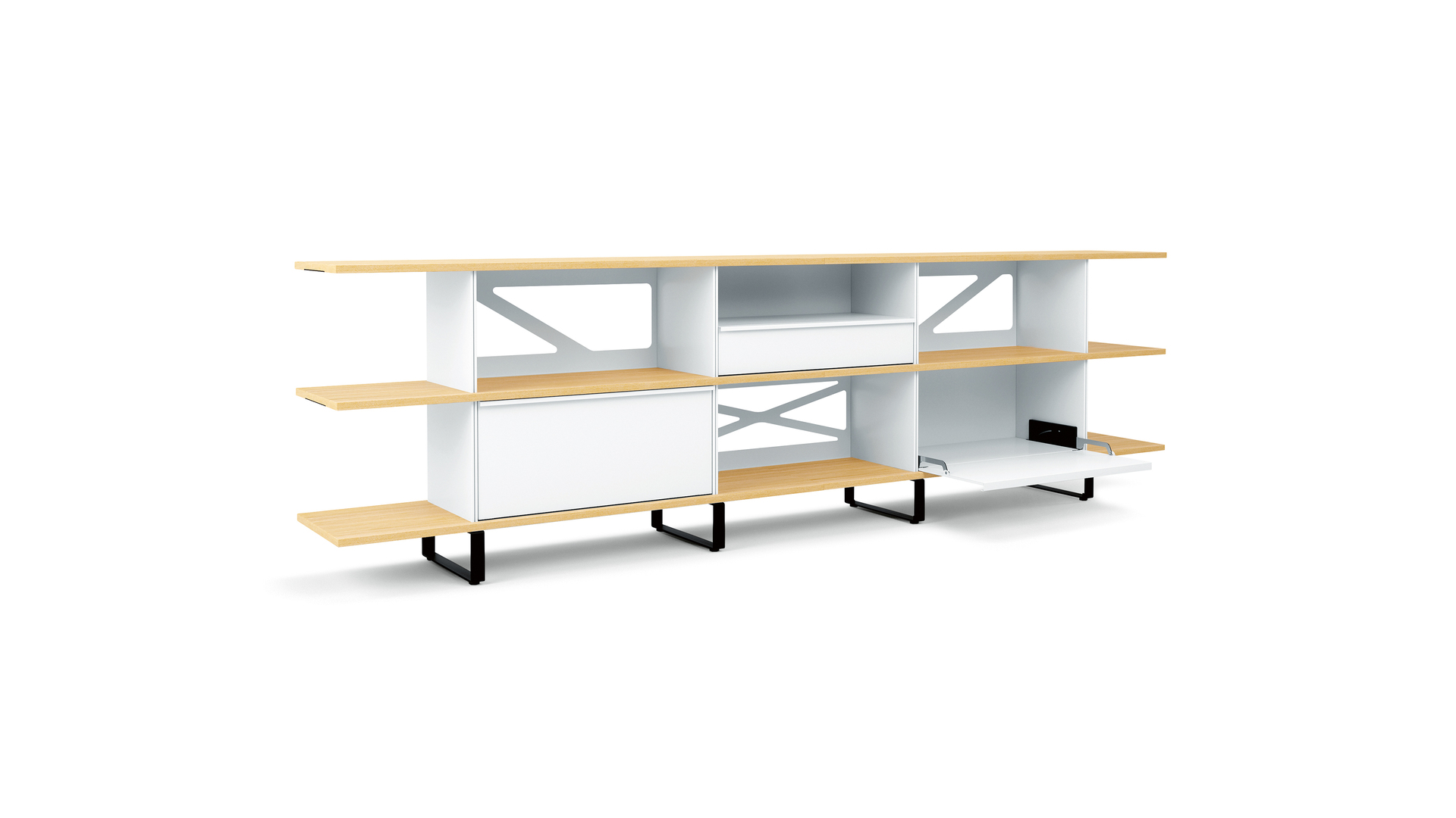 The flexible LO Next room divider and shelving system lends work environments individuality as well as dynamism. The furniture system structures open spaces and creates presentation areas with practical storage space. It proves to be as versatile as the people working in the room and can be equipped individually on both sides. The different back panels as well as the drawers and flaps – optionally with locking system – can be exchanged and extended in no time without tools. Thanks to the simple linking of shelves, the room divider and shelving system offers virtually endless possibilities from one to five folder heights. Developed in Switzerland and produced with high quality and safety standards, it received the “Cradle to Cradle” and “Geprüfte Sicherheit” (“Tested Safety”) certifications.