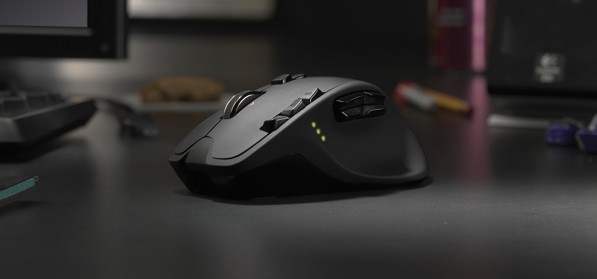 The Wireless Gaming Mouse G700 was developed to meet the growing demand of computer users for online games. They need comprehensive control functions which can be adapted to their own preferences. For this reason, particular attention was directed to the design of the control keys. Each detail of the operating elements conveys a high degree of control and comfort. This allows players to precisely reach the intelligently placed keys without having to take their eyes off the screen. The four thumb control keys located on the left side are one of several innovative features. Even when the thumb is resting on all four keys at the same time, each single key can still be controlled individually. Another important feature is the quick-charge function of the mouse. It is equipped with a rechargeable battery that can be charged via a cable even while in use.