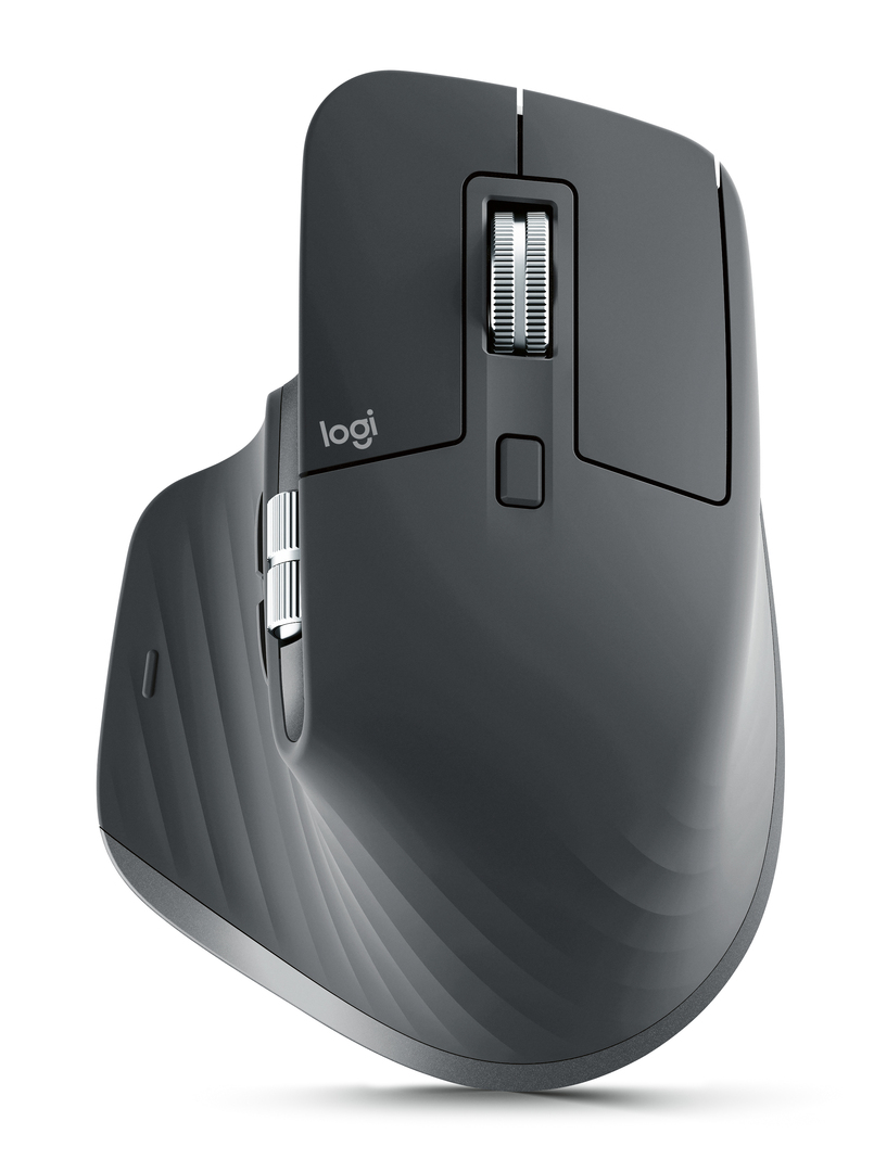 The electromagnetic scroll wheel of the Logitech MX Master 3 offers increased scrolling speed, improved precision and silent switching between modes. Users can customise buttons to speed up workflow in frequently used computer programs. The dark field sensor with 4,000 dpi allows tracking on almost all surfaces, including glass. With its large thumb area, the mouse features an extremely ergonomic layout and offers the hand a comfortable palm rest.