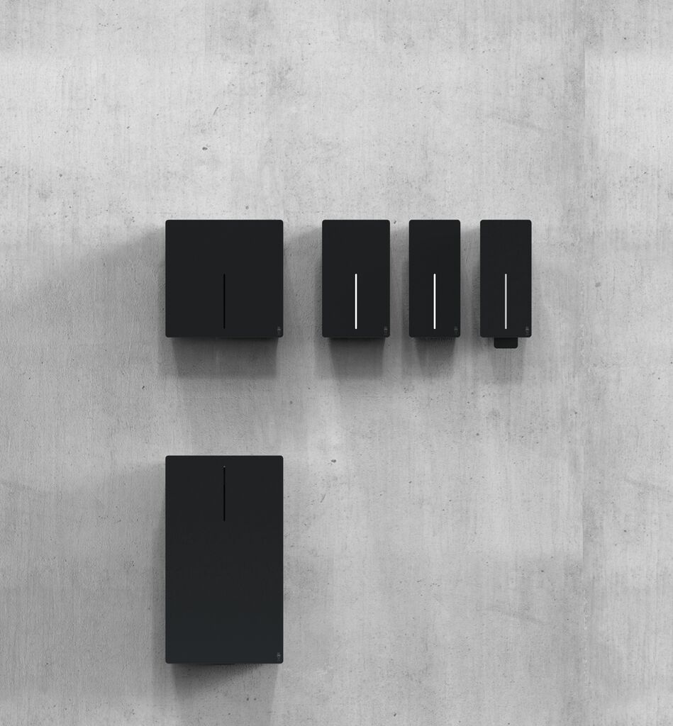 Clear lines and rectangular shapes are the characteristic design features of the LOKI washroom equipment series. The functional and elegant-looking series not only blends in unobtrusively with the architecture and equipment of different washrooms, it also has a high visual recognition value: the slim front panel with rounded edges lends the dispensers for soap, disinfectant and paper a seemingly floating appearance. The narrow window strip in the middle features as the signature icon of the series, which is picked up by all elements.