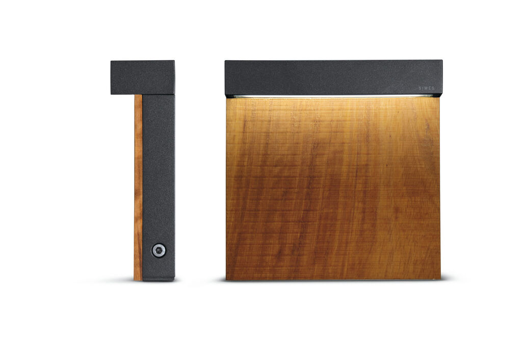 Look Wood is an LED outdoor light device, which achieves a glare-free illumination of a building’s surroundings, blending in with modern architecture. The compact luminaire features the geometric arrangement of a parallelepiped, emphasising the contrasting materials of the upper black-coated aluminium surfaces and the bottom wood surface. Technically, the LED configuration allows a decorative positioning of appealing light accents in the lower part of a façade.