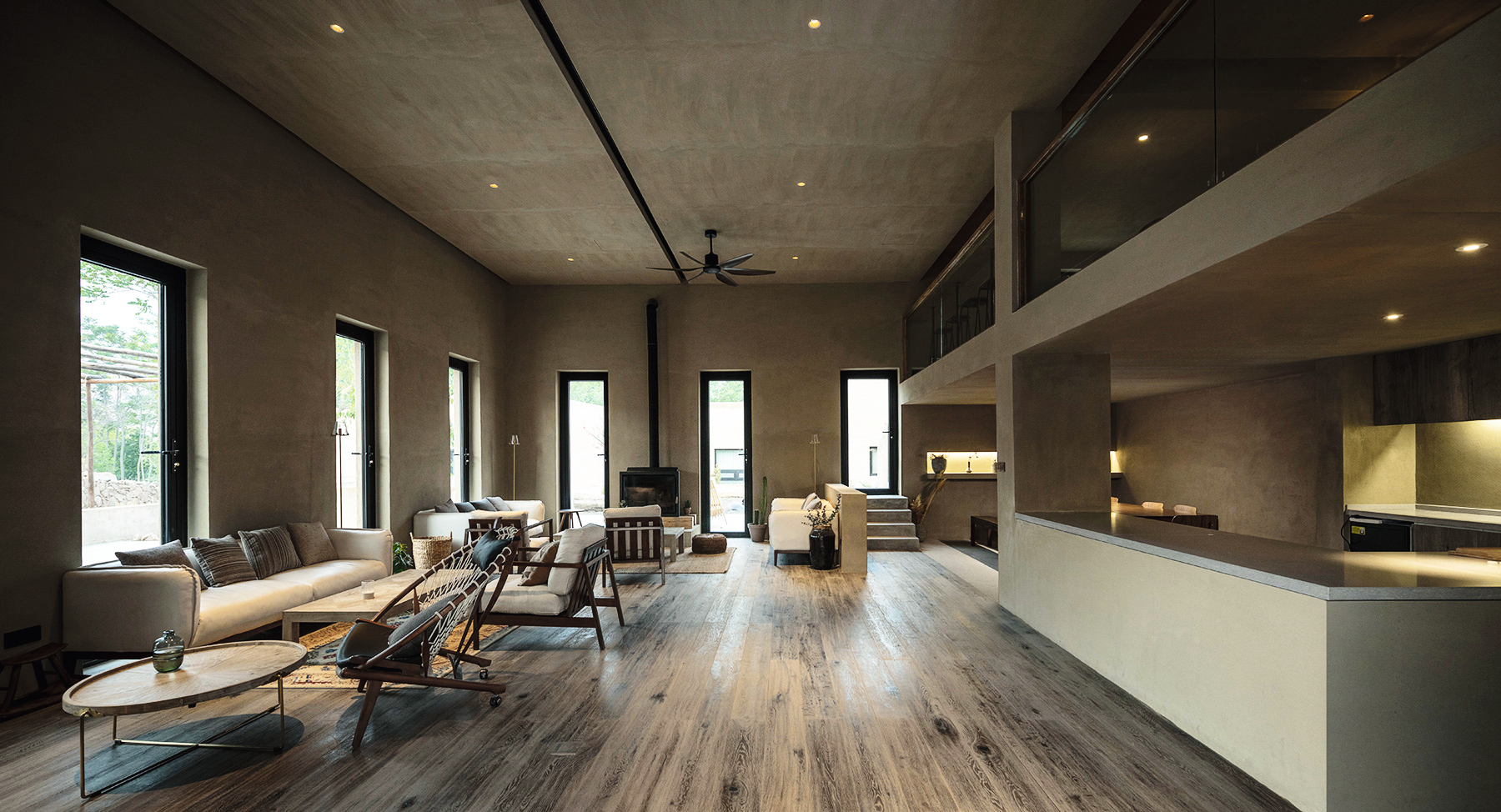 The Lost Villa Boutique Hotel in Zhongwei, Ningxia, is situated on the banks of a river. It consists of several flat-roofed houses, terraces and courtyards that seem to blend into the surrounding countryside. To make them resemble the local architecture, the exterior facades are coated with cement mortar which gives them a deliberately old look already after a short time. Every room in the hotel has a large window with a view of the river or a small wood. Light is a key element in the interior and creates constantly changing shadow effects.