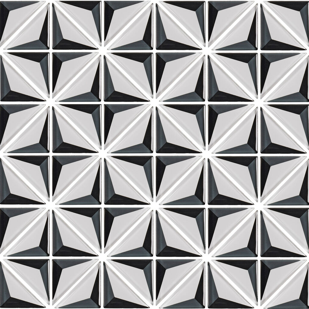 The architecture of the Louvre in Paris and its famous glass pyramid were the inspiration for the visionary, three-dimensional form of this arresting glass mosaic. A precise glass-cutting technology leads to the creation of a work of art, which is both three-dimensional and multi-perspective. Even before the grouting takes place, a star-shaped pattern is visible thanks to an underlying stacked grid. Afterwards, further beautiful, glittering effects become apparent.