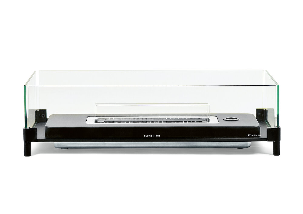 The proprietary stainless-steel wick and non-toxic fuel of this environmentally friendly tabletop fire pit allows for clean, smoke- and odour-free flames. The fuel has a high flash point of 104 degrees centigrade, thus minimising the risk of flare-ups of the flames. The freestanding, portable tabletop fire pit comes with angled glass inserts to stabilise airflow and enhance the fire’s aesthetics while simultaneously dissipating heat. The wick burns for more than 2,000 hours, thus allowing sustainable use.