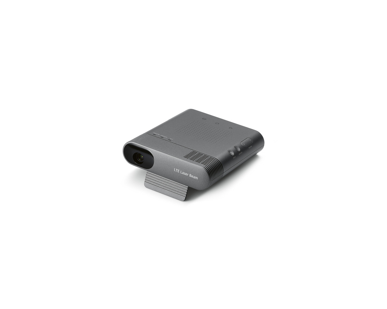 With its LTE module, the LTE Laser Beam streams large-volume content like movies directly via the mobile phone network. This makes the user independent from Wi-Fi or a wired Internet connection. At the same time, the mini projector can be used as a mobile Wi-Fi hotspot – even when the device is turned off. The design of the Laser Beam is compact and plain, making it easy to grasp and carry along. To maintain the reduced appearance, all ports except for the power and charging connector are hidden underneath a protective cap.