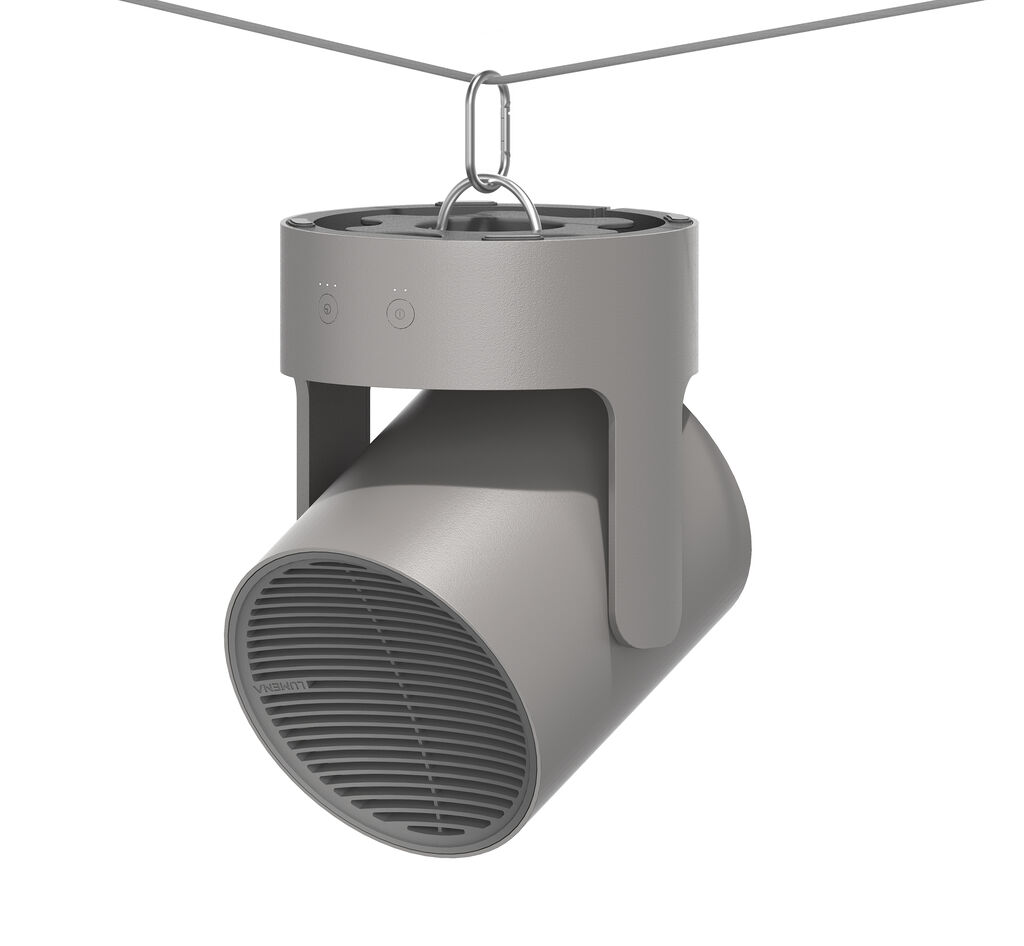 The LUMENA WARMER POT is a small fan heater equipped with PTC heating modules that blows out warm air immediately after being switched on. Since it can be swivelled, the user can direct the air flow in any desired direction. With its low weight, it offers excellent portability and can be placed in the room as desired. Thanks to its puristic design and muted colour scheme, it also harmonises with any type of interior design. The jury noted: “The fact that the fan heater was designed in the shape of a spotlight is as original as it is functional and gives the product a playful touch.”