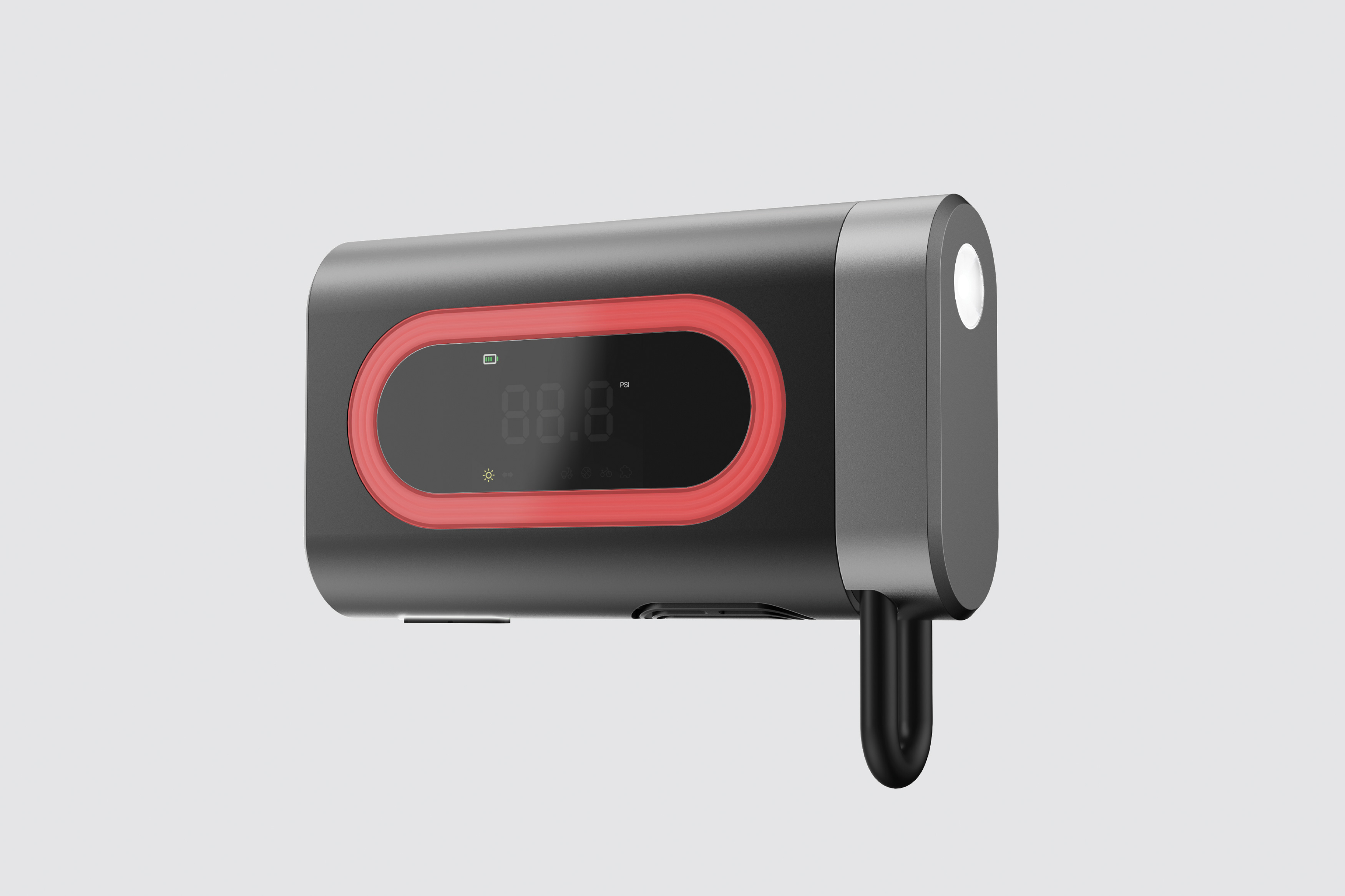 Lumind Pump redefines cycling safety and portable bike pumps. It offers turn signals, safety warnings, and emergency lighting in a compact, detachable form that can be mounted under the seat with a bracket. A real-time display and illuminated controls enhance interaction, while a rugged metal body and multifunctional rotating bracket support inflation operations, secure tool storage, and concealed wiring. Red Dot Award: Design Concept | Ready For Market | Vehicle Accessories