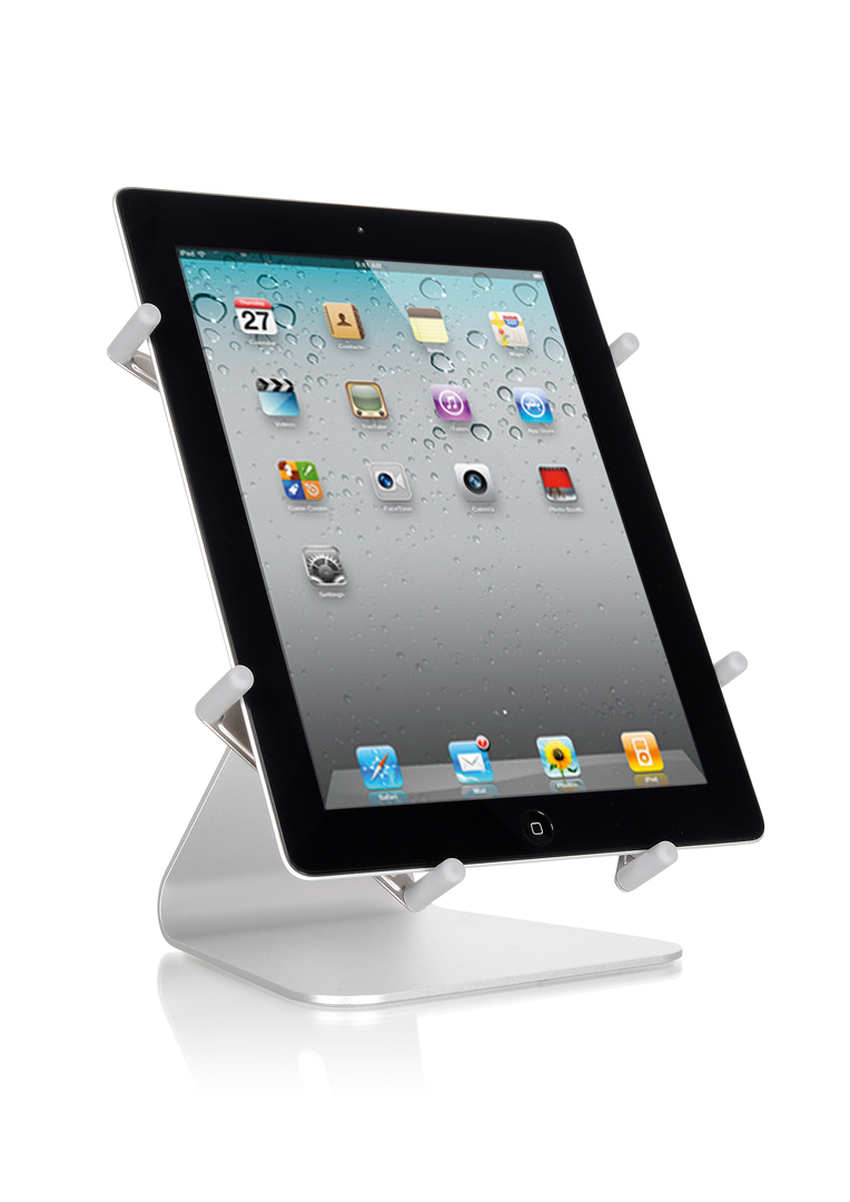 With its adjustable supporting arms, LUXA2 H4 holds tablet PCs and e-book readers with a weight of up to 4 kg. The aluminium stand can be rotated 360 degrees or even swivelled vertically, which enhances the experience of working or reading. The robust stand was tested against the highest industrial standards and, even after 20,000 full rotations, still achieved 85 per cent of torque.