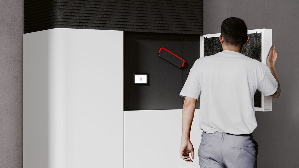 The LWZ HKWL Premium is a compact integral appliance combining the five essential building service functions of heating, cooling, hot water preparation, ventilation and air purification. An appealing design and a minimal footprint allow the unit to be integrated into practically any interior space. With an exhaust air heat recovery rate of up to 92 per cent and the option of using self-generated photovoltaic electricity, the device addresses sustainability aspects and minimises operating costs at once. It uses the natural refrigerant propane.