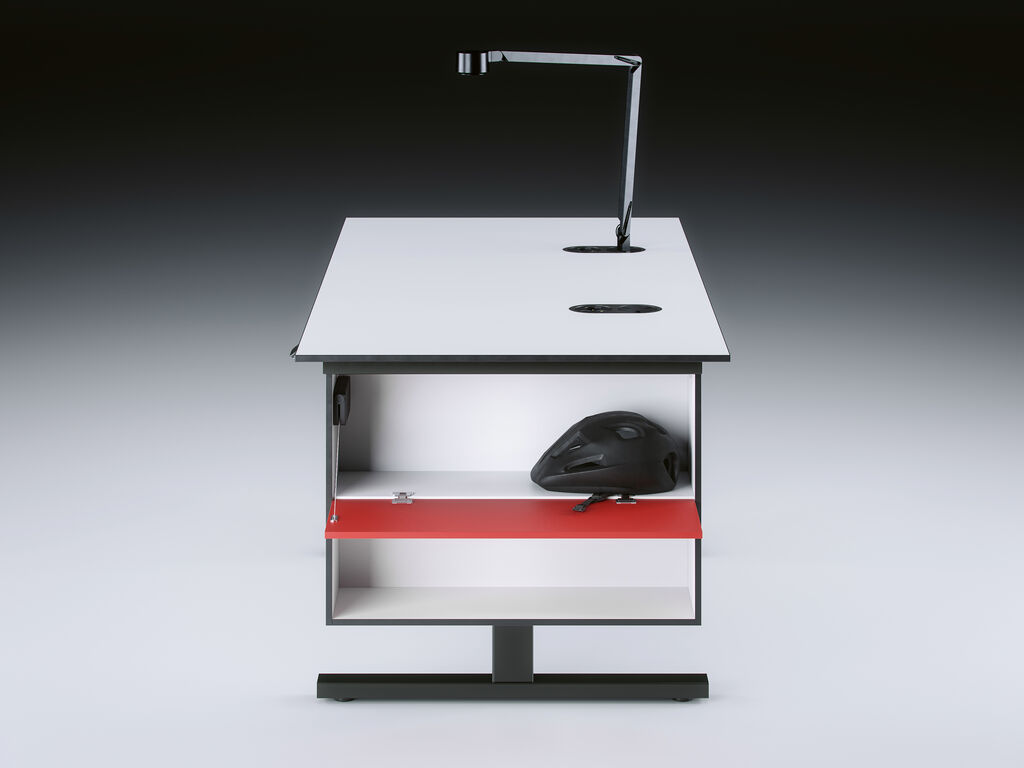 The m-pur-habitat desk series is characterised by both a clear appearance and a wide range of functions. The electrically height-adjustable desks with integrated drawer enable different usage scenarios. Additional storage modules in various sizes and types