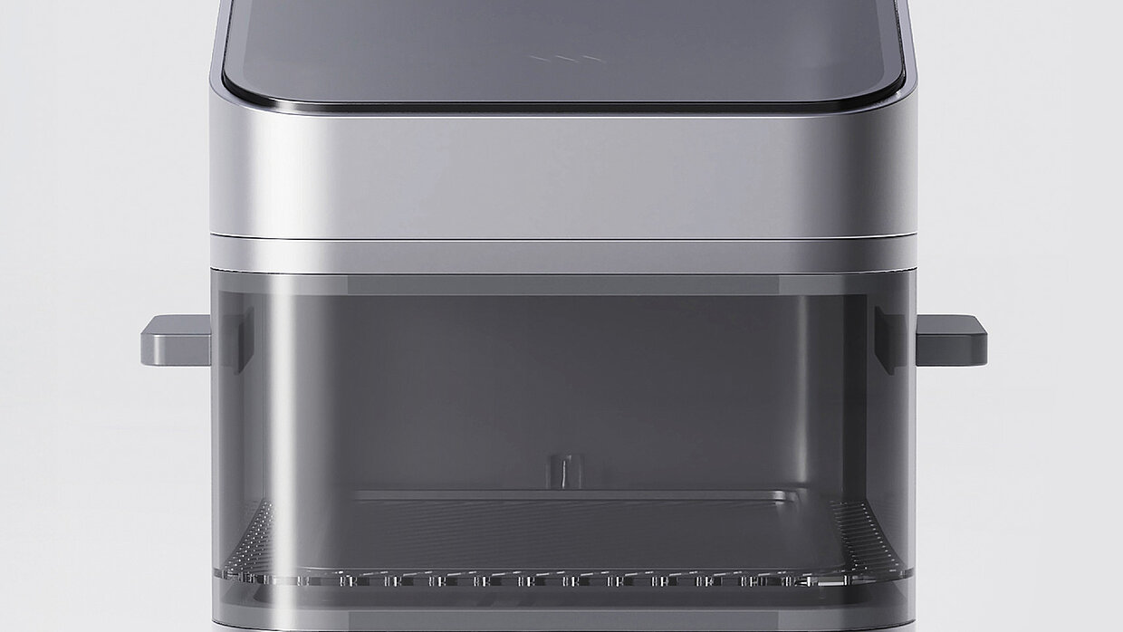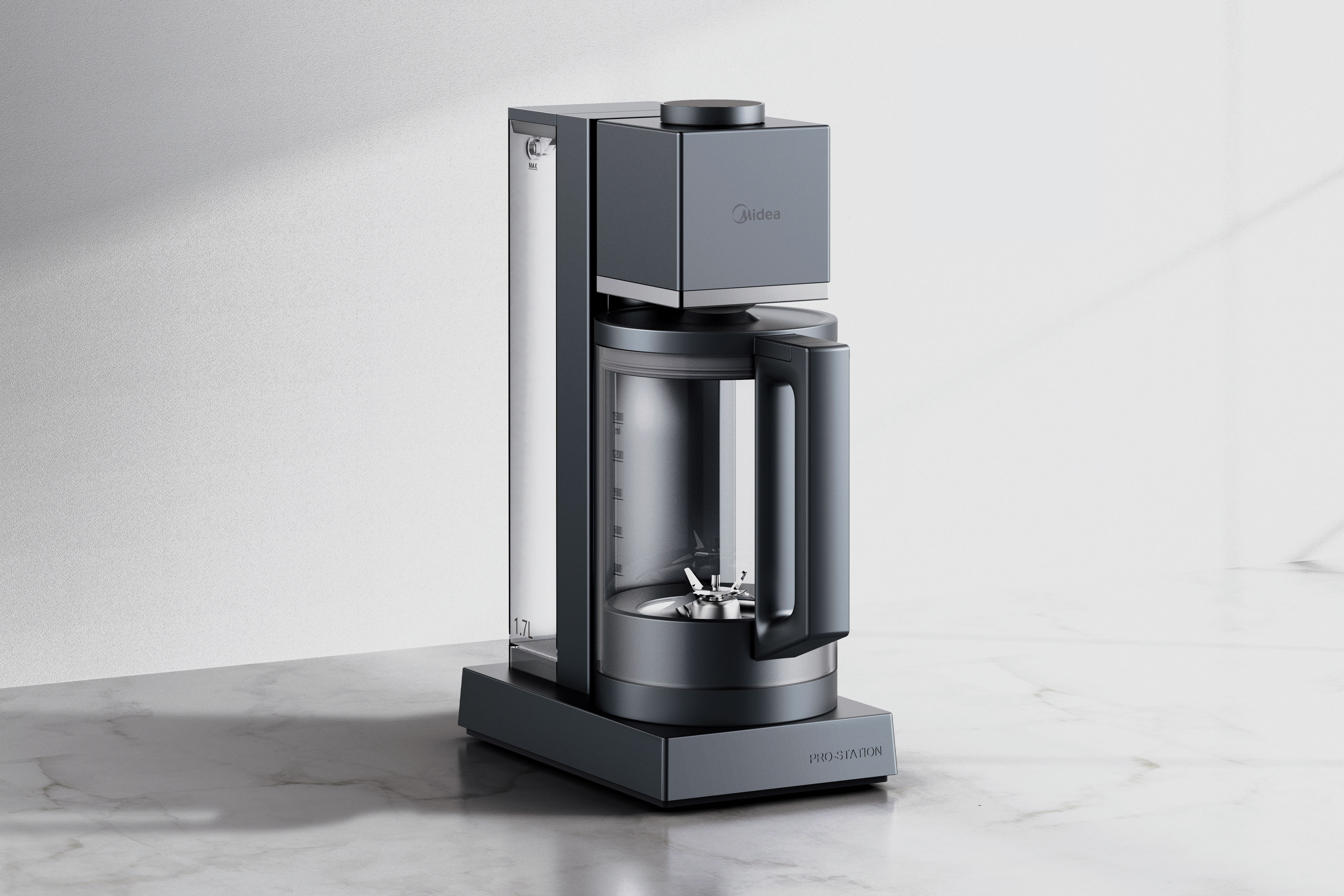 Magnetic Mixer, a magnetically driven blender with rotating blades, replaces the traditional coupling system to reduce noise and enable a thinner, lighter base. It features separate water and ingredient tanks, allowing users to preset blending without over-soaking. Cups pull out forward to reduce magnetic suction, while a removable spout head and knob screen control enhance ease of cleaning and operation. Red Dot Award: Design Concept | Ready For Market | Kitchen Appliances and Accessories