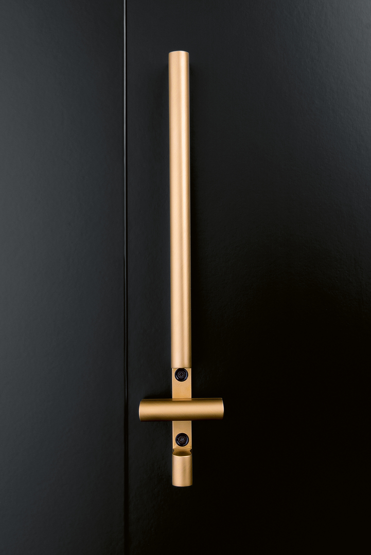 The innovative Magnetic locking system and the Yes! door handle create a functional unit. The locking system makes use of the power of magnets. One magnet is located in the door frame, its counterpart in the door leaf. The Yes! handle is available in five lengths and can optionally also be equipped with an integrated toilet / bathroom locking system. The solid brass handle is offered in a minimalist full version or with a two-finger grip hole. Users can choose from ten different surface finishes.