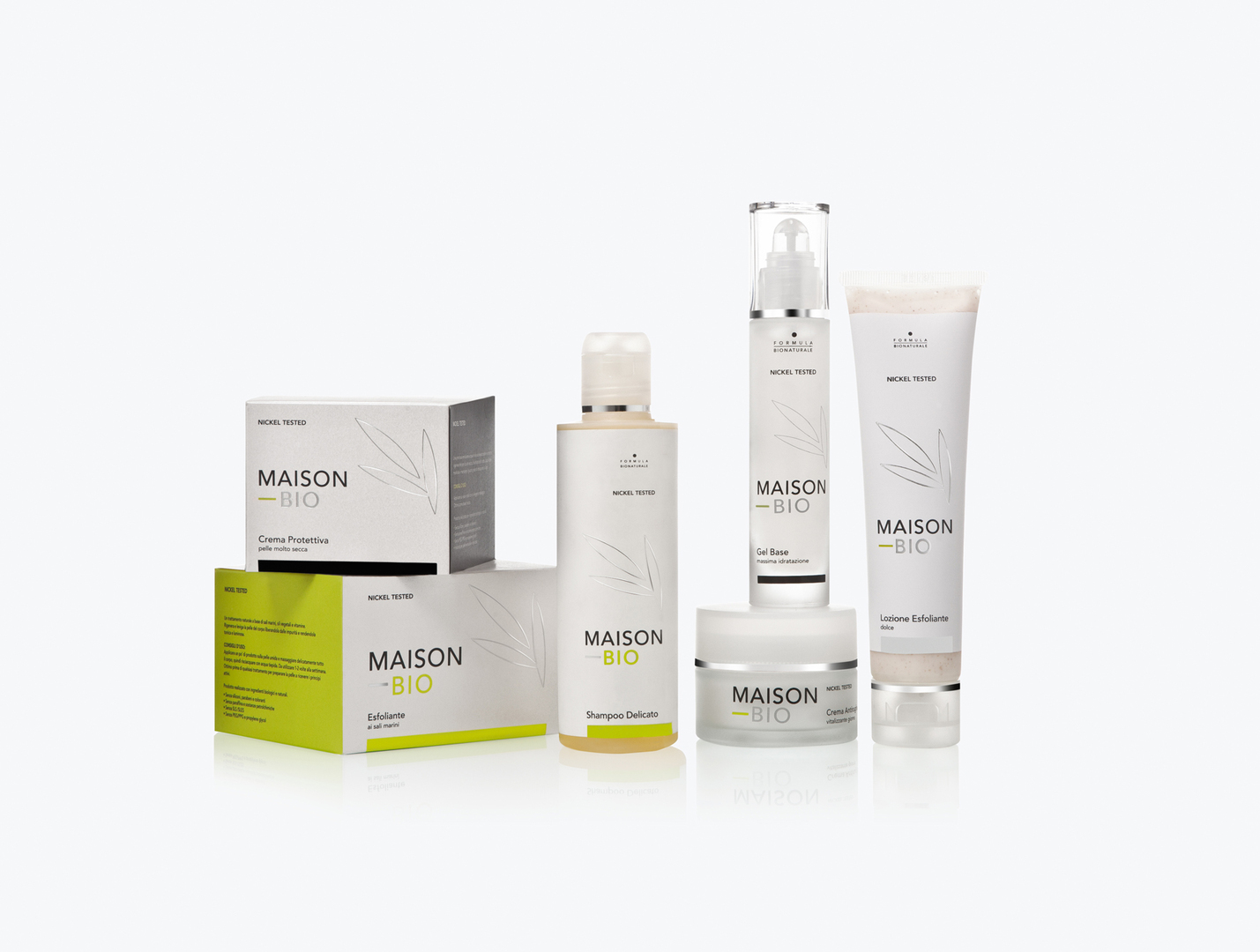 The brand identity for Maison-Bio supports the objective to establish the organic cosmetics brand as market leader in Italy. The company’s communication combines the biological quality of the products with the glamorous character of the brand. The task included the creation of the name, the design of the logo, packaging solutions as well as integrated online and offline communication tools. The identity is characterised by an iconic style together with an essential packaging that plays with the colours black, green, white and gold.