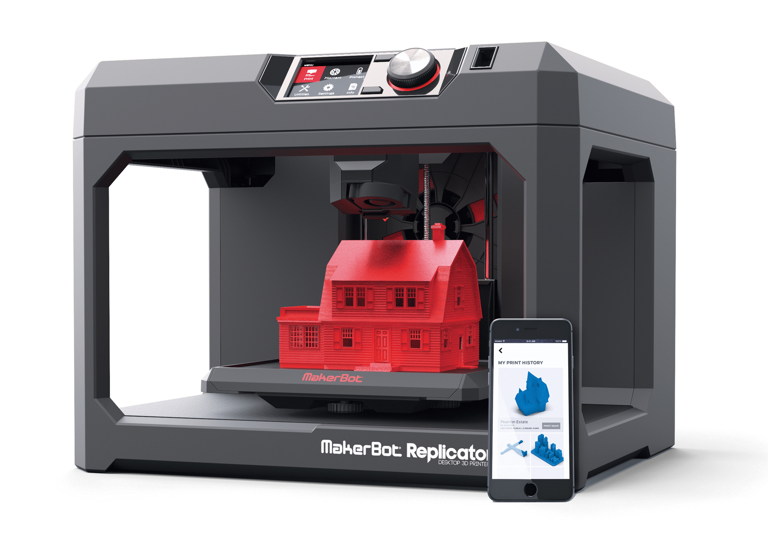 The MakerBot Replicator desktop 3D printer delivers a seamless 3D printing experience for novices and professionals alike. The device has a simple user interface with a rotary knob and a 3.5” display. Through the mobile app, prints can be prepared and initiated. In addition, the built-in camera allows users to remotely monitor prints. The Smart Extruder enables users to swap a worn extruder in minutes and thus minimise printing downtime.