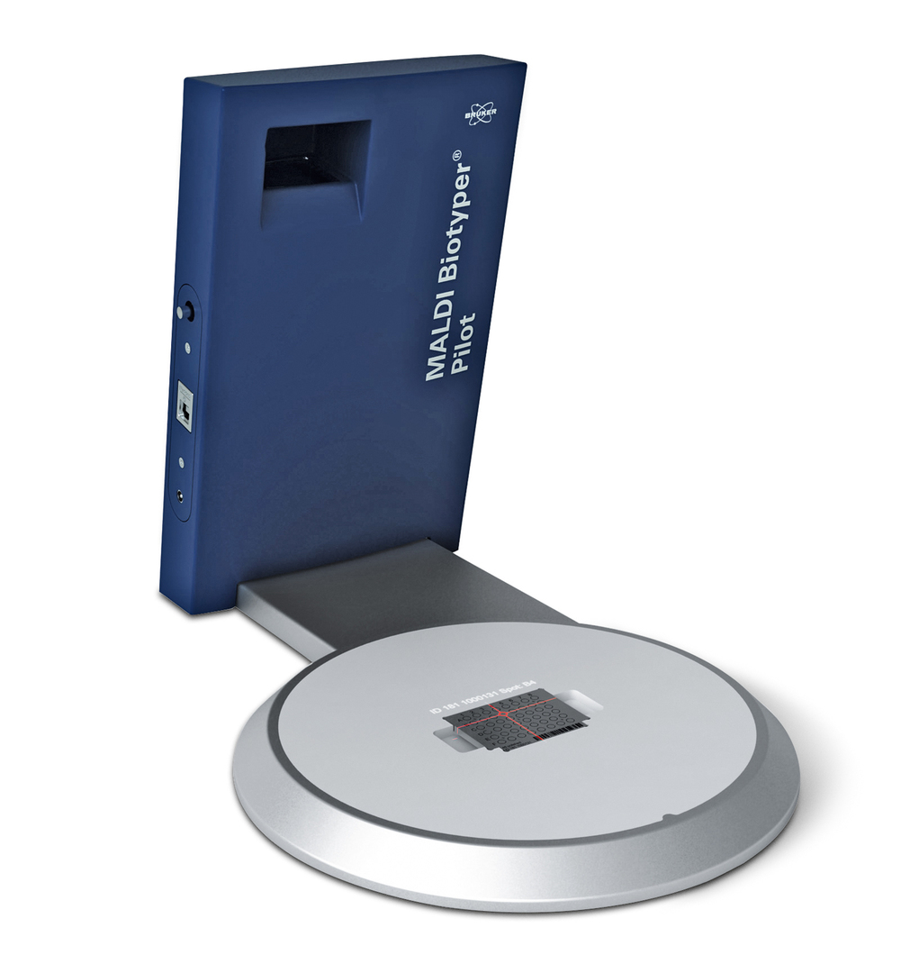 The Maldi Biotyper Pilot assists in the preparation of samples in microbiology laboratories. The mini-projector displays cross hairs on the sample carrier and therefore indicates the exact position where the sample is to be placed. The device is operated without a keyboard, as the assignment of the sample to the sample carrier is solely carried out through barcode scanning. The cross hairs automatically jump to the next free position.