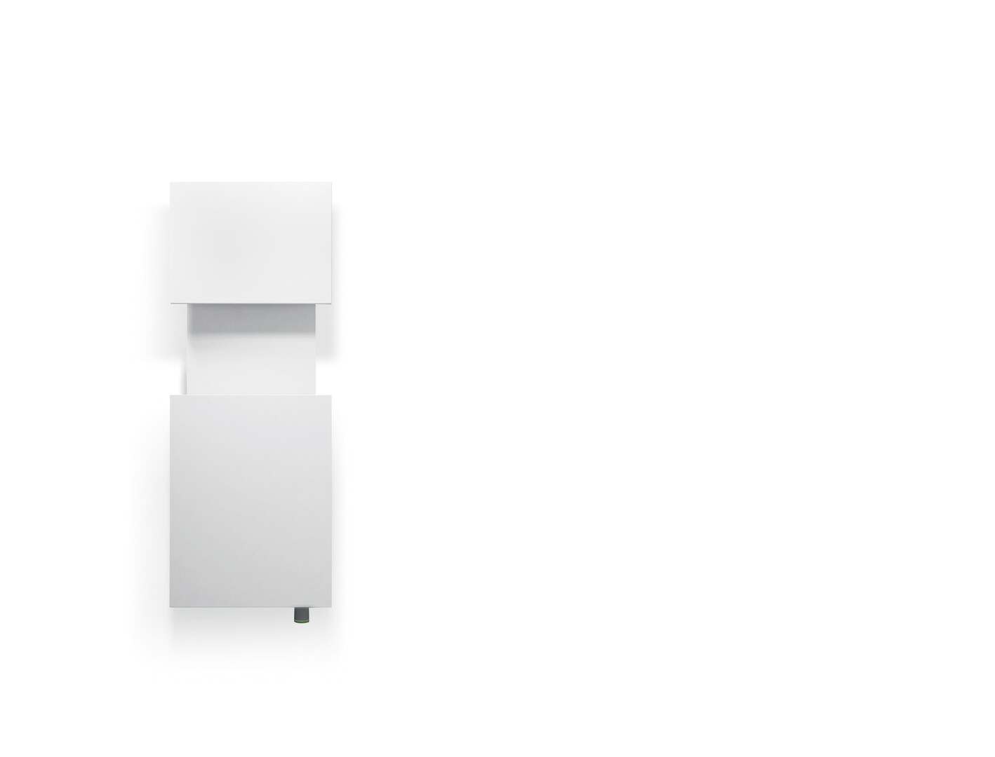 The M’ama radiator combines functionality and simplicity. Its characteristic feature is the staggered arrangement of the three water-flowed heated surfaces. This design creates a 3D effect that lends the radiator a sculptural appearance and provides a storage space for towels and other textiles. The rounded edges of the overlapping heating plates and the complete coverage of the technical parts ensure a high degree of product safety.