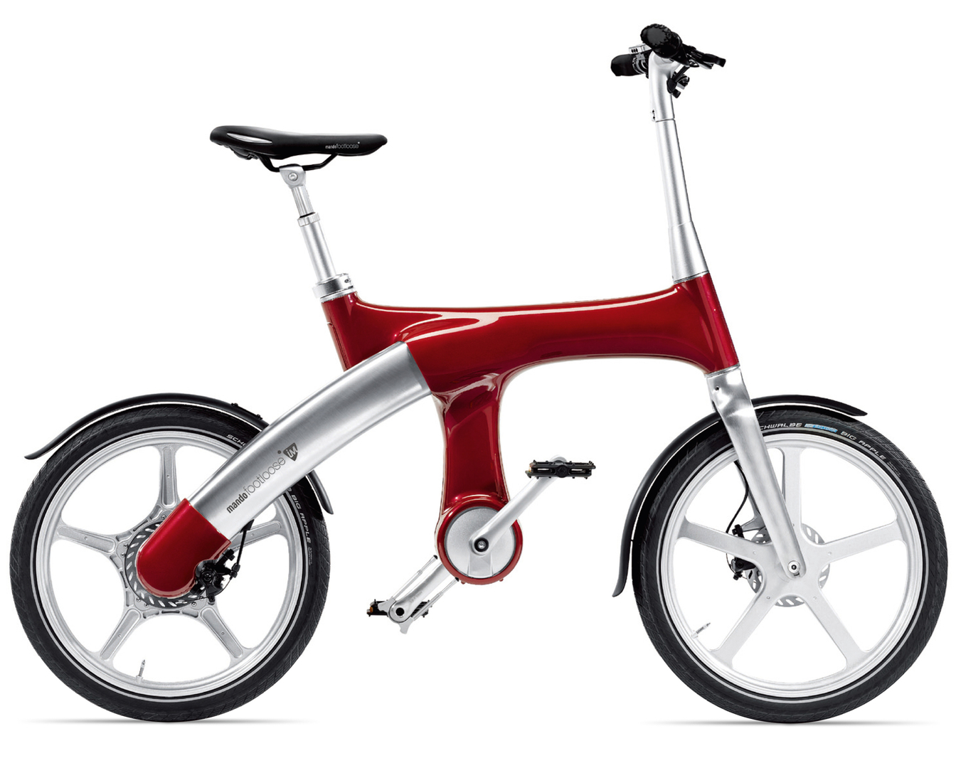 Mando Footloose IM is a new concept in e-mobility using the latest automotive technology. It features a built-in Series Hybrid System motor to power the vehicle without chains. The vehicle operation is fully managed by an automotive-level Electronic Control Unit paired with CAN communication. The unit generates power with an alternator and offers a choice between throttle and pedal-power.