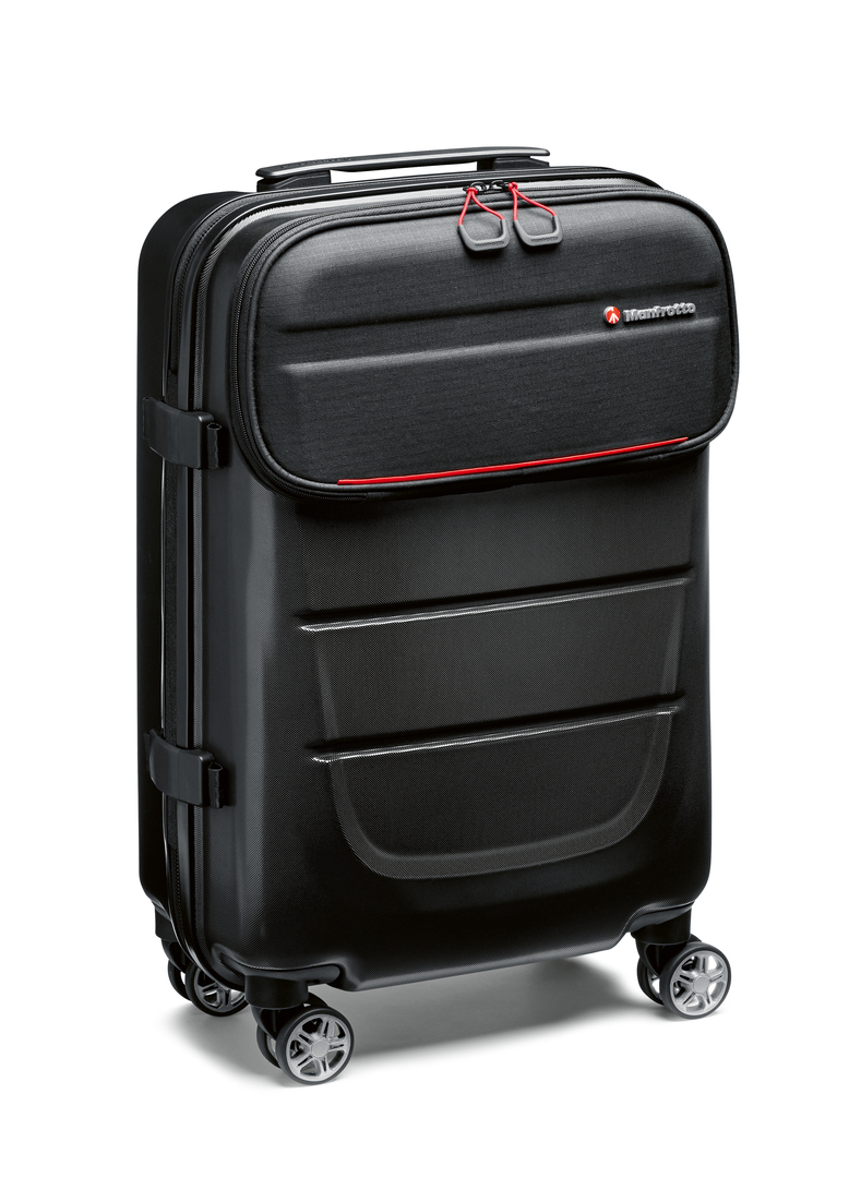 The Pro Light Reloader Spin-55 is a photographic camera roller bag in carry-on size which includes an individually adjustable compartment system for safely transporting professional cameras and lenses. Since the inner compartments can be fully removed, the trolley can also be used as a normal travel suitcase. The external shell consists of sturdy yet light polycarbonate to provide full protection; four double spinner wheels ensure smooth rolling. From the front, travellers have quick access to the interior compartment.