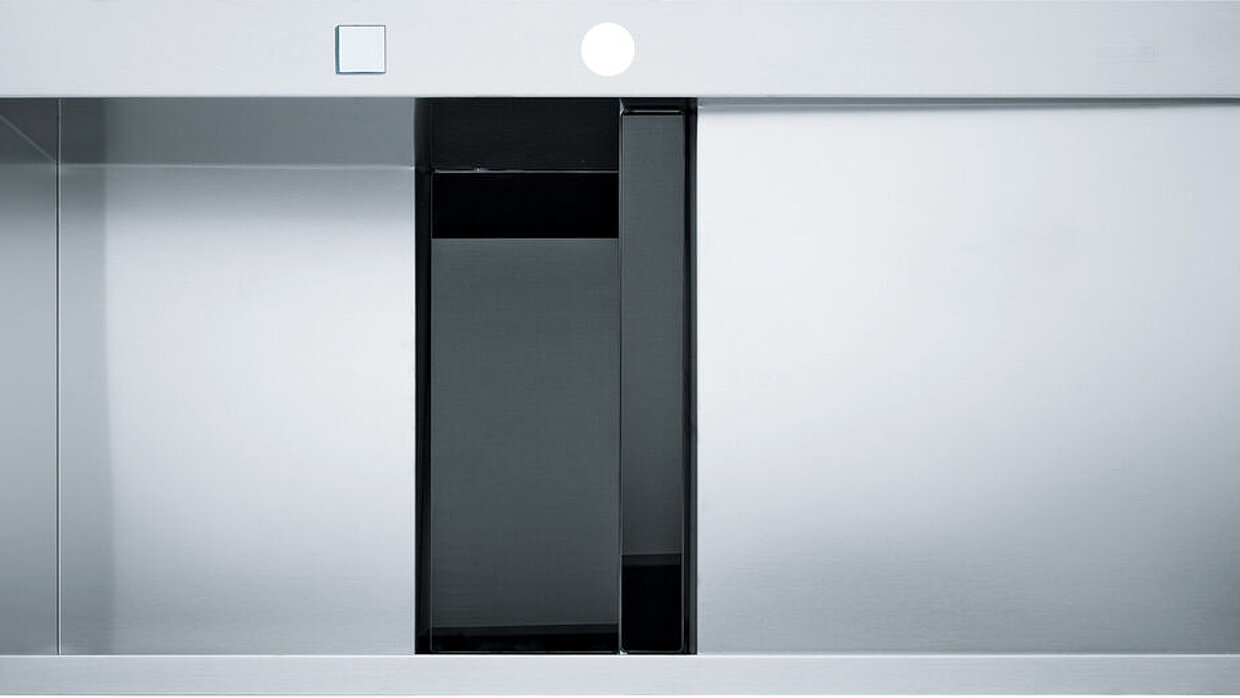 Symmetrical proportions and a centrally located glass panel with a continuous, slim stainless steel strip characterise the high-performance range hood Maris Plus and emphasise its horizontal alignment. The A+ hood is controlled via a touch control display with four power stages plus an intensive stage. The control elements are invisible when switched off and are activated simply by touch or by remote control.